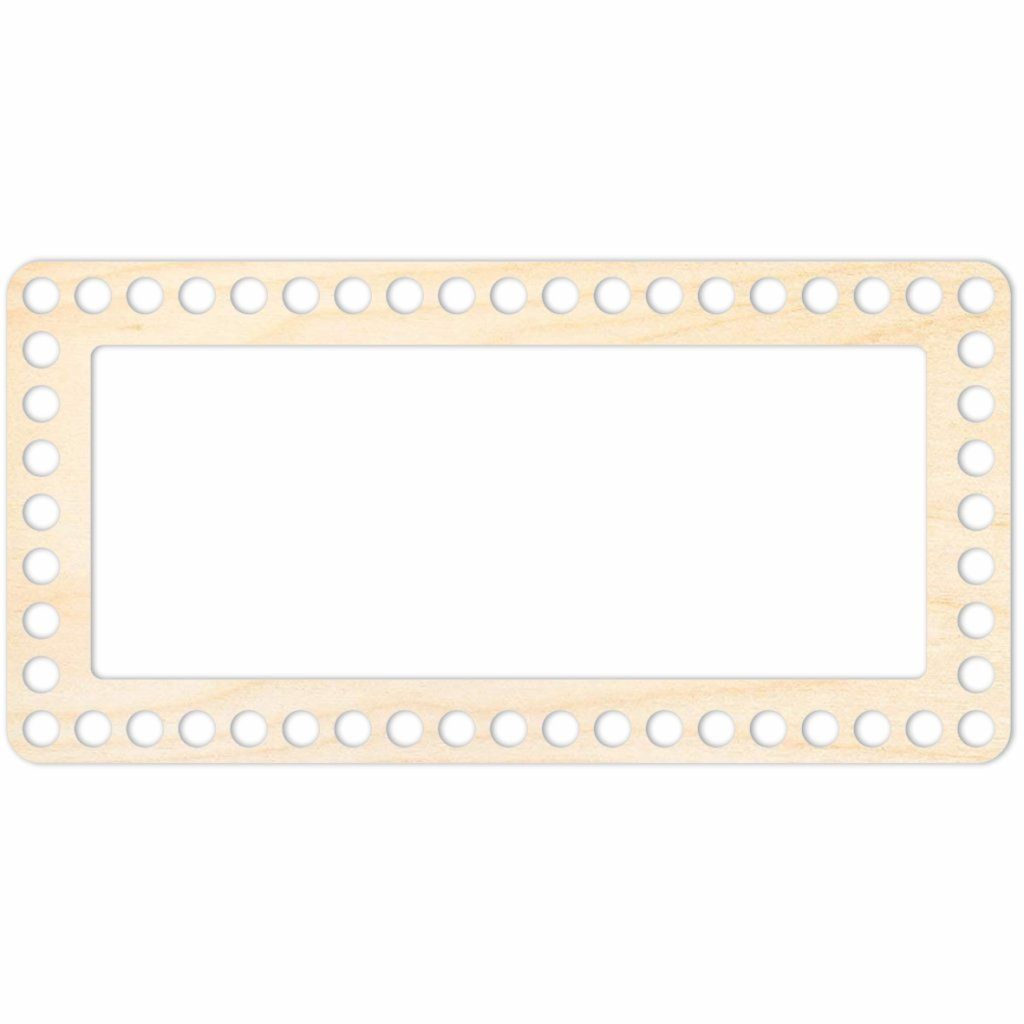 Prstenec pro obdélníkové víko o rozměru 24 x 12 cm, vyrobený z březové překližky o síle 3 mm, který je vhodný pro výrobu háčkovaných košíků ze špagátových nebo šňůrkových přízí.