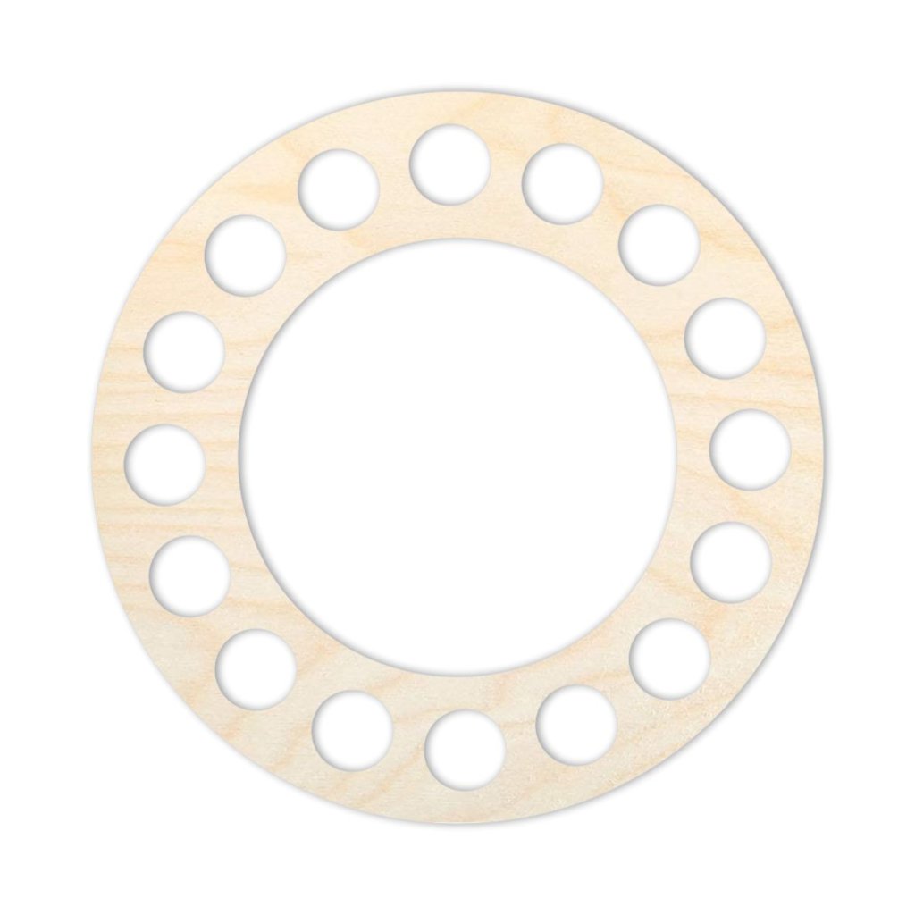 Prstenec pro kruhové dno o průměru 8 cm, vyrobený z březové překližky o síle 3 mm, který je vhodný pro výrobu háčkovaných košíků ze špagátových nebo šňůrkových přízí.