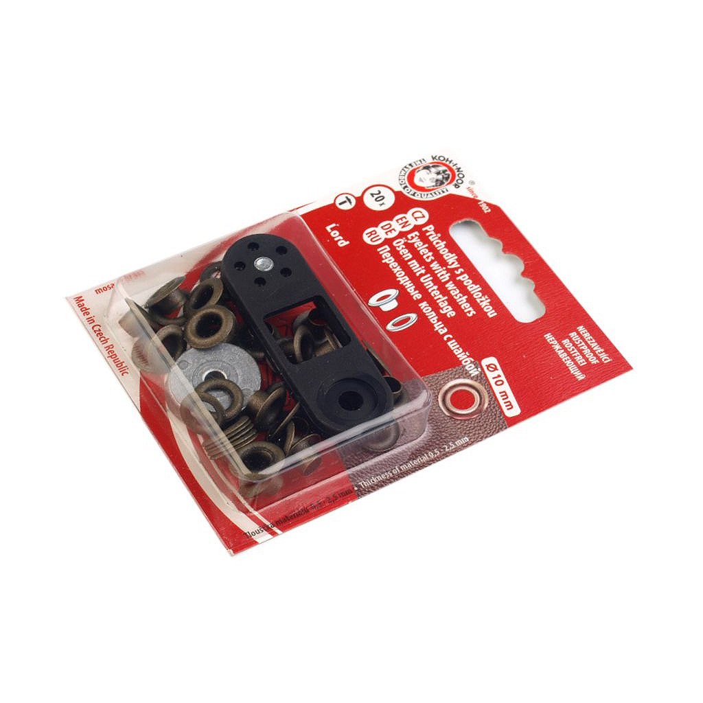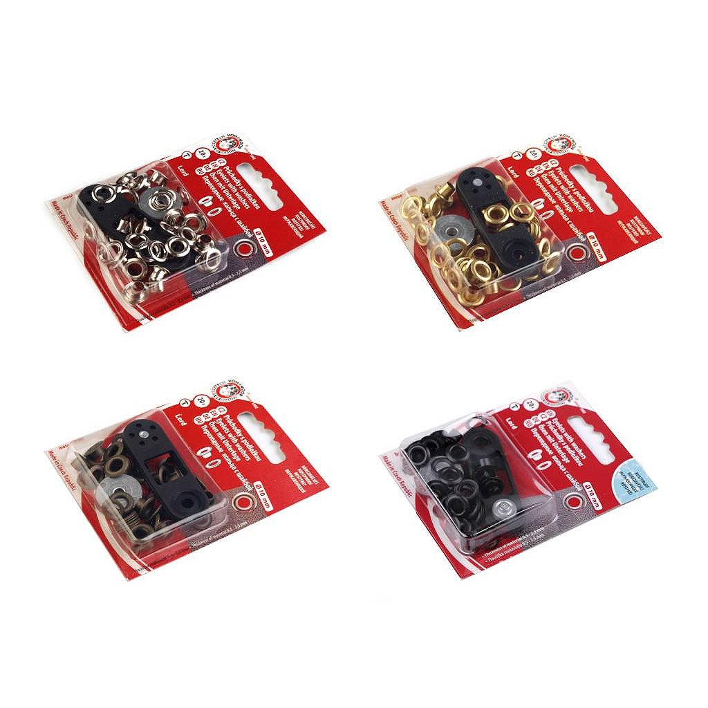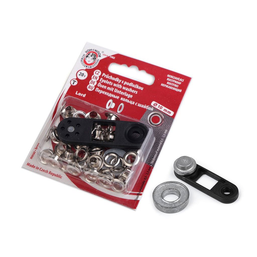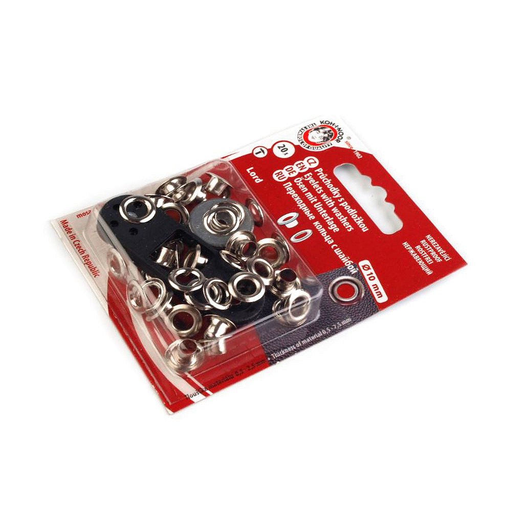 Nýtování se provádí ručně mini lisem, který je součástí balení, nebo lisem, který najdete pod kódem 630344. Na vysekávání děr do látky doporučujeme použít výsečník.