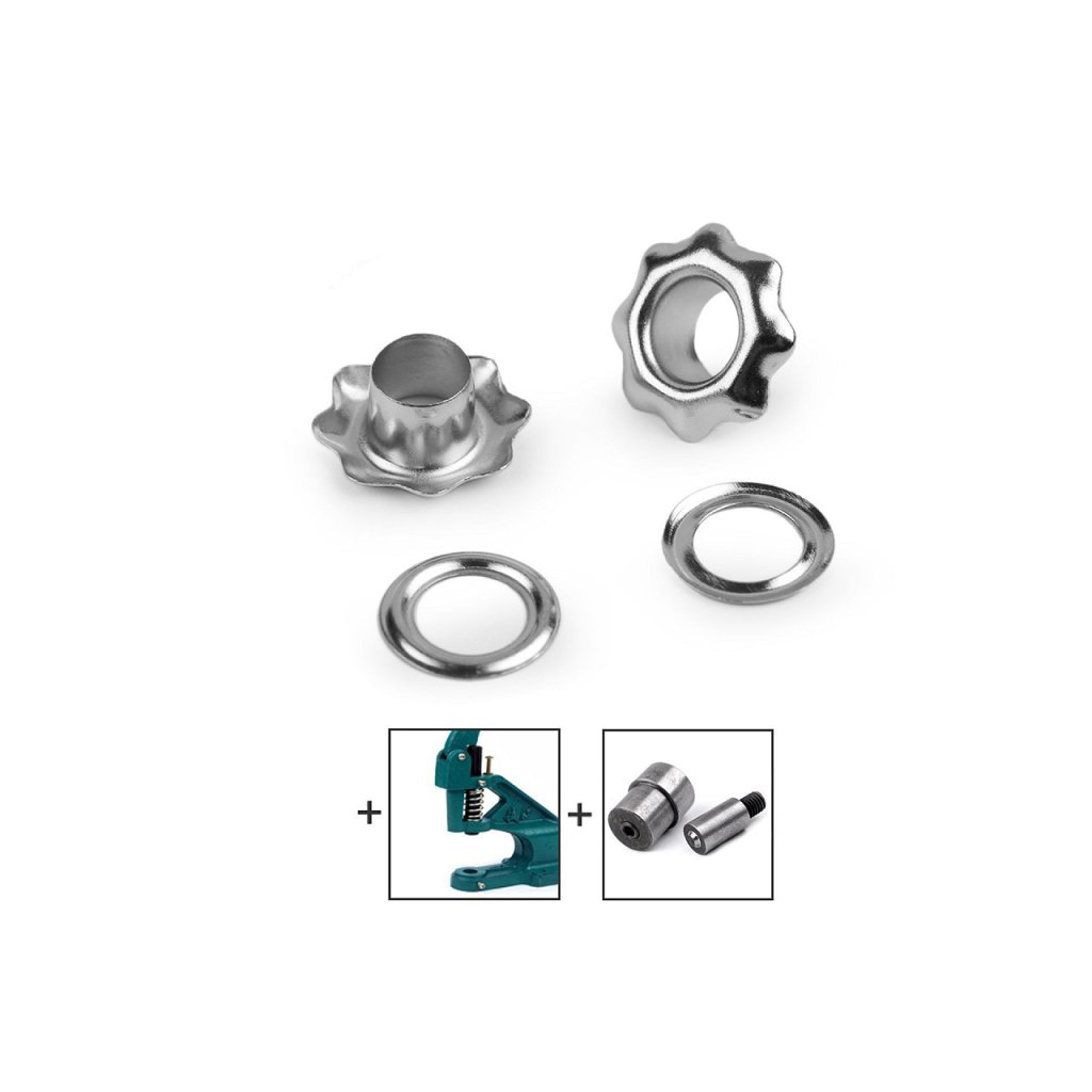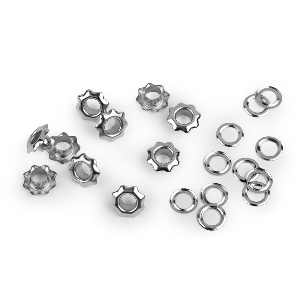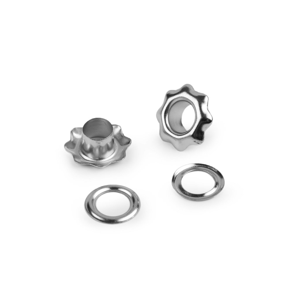Kovové průchodky svým designem připomínají květ. Nereziví. Ozdobíte s nimi mikiny, šaty, bundy, vesty, batohy i tašky.