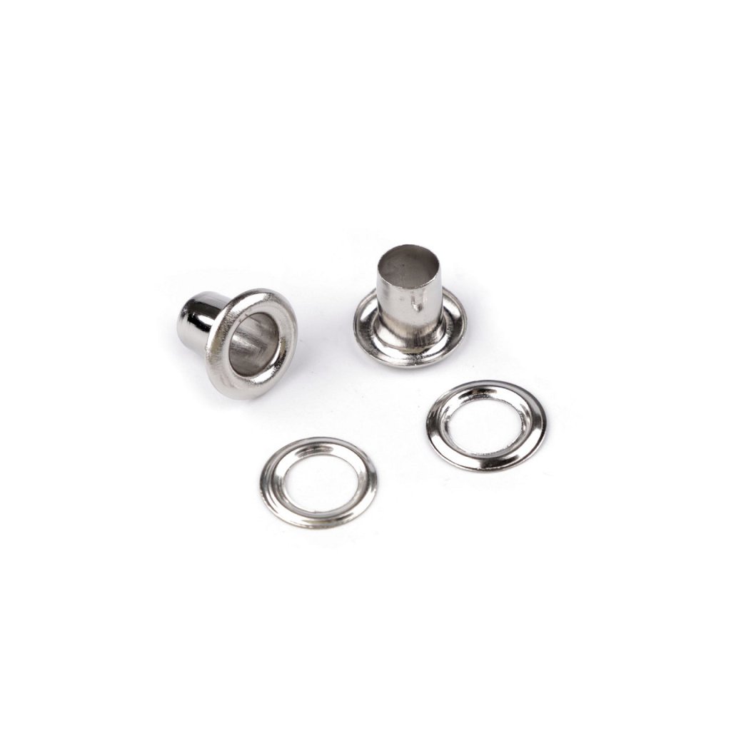 Kovové průchodky zpevní dírky v materiálu a umožní provlečení šňůry nebo gumy. Využijete je při výrobě a zdobení tašek, kabelek nebo batohů. Skládají se ze dvou částí. Při styku s vodou můžou rezivět.