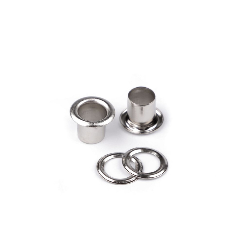 Průchodka umožňuje provlečení šňůry nebo gumy - zpevňuje dírky v materiálu. Nereziví, proto je vhodná k ozdobení oděvů, plavek nebo tašek.