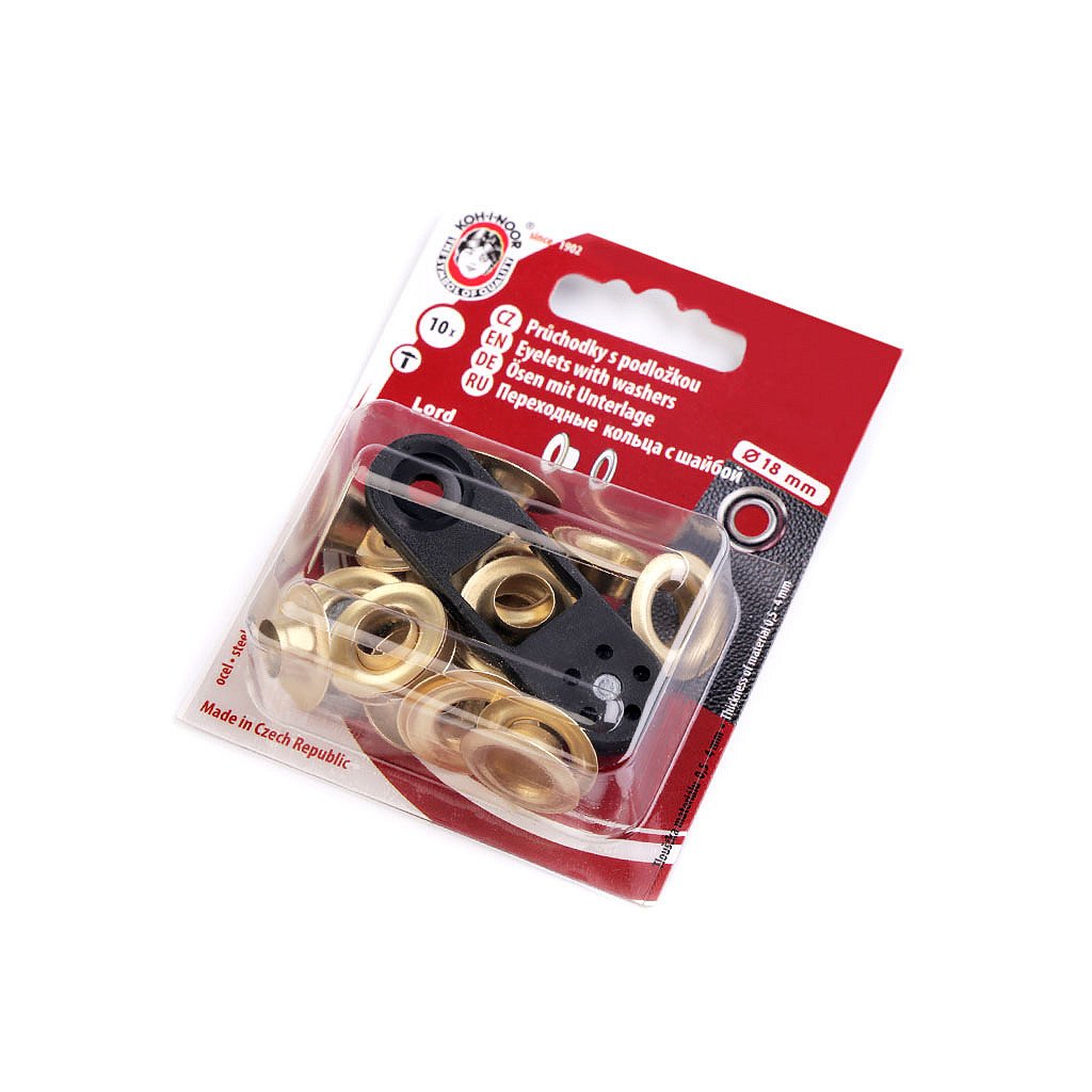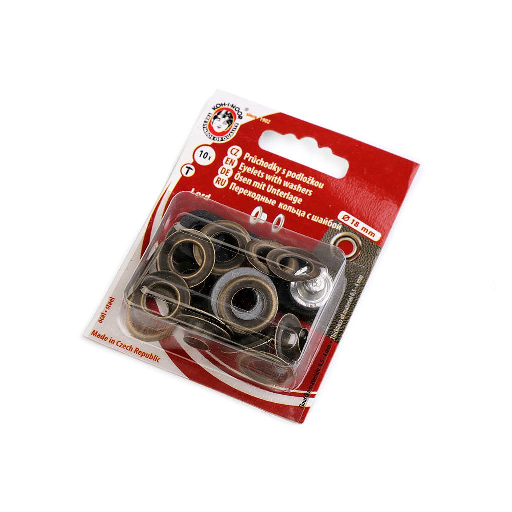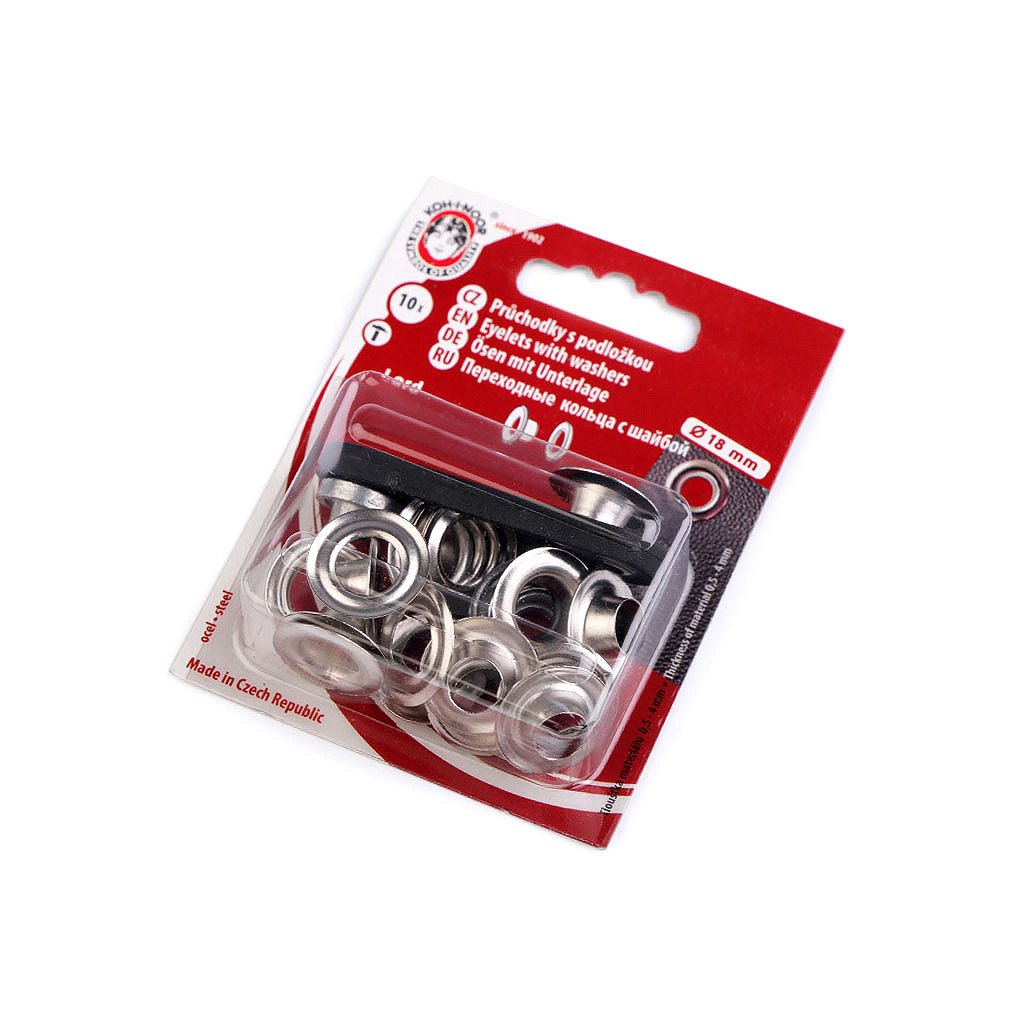 Průchodky se používají na šňůry, nebo jako výztuž větracích otvorů či plachet apod. V blistru je 10 párů. Jsou vyrobené z kovu a hrozí jím rezivění.