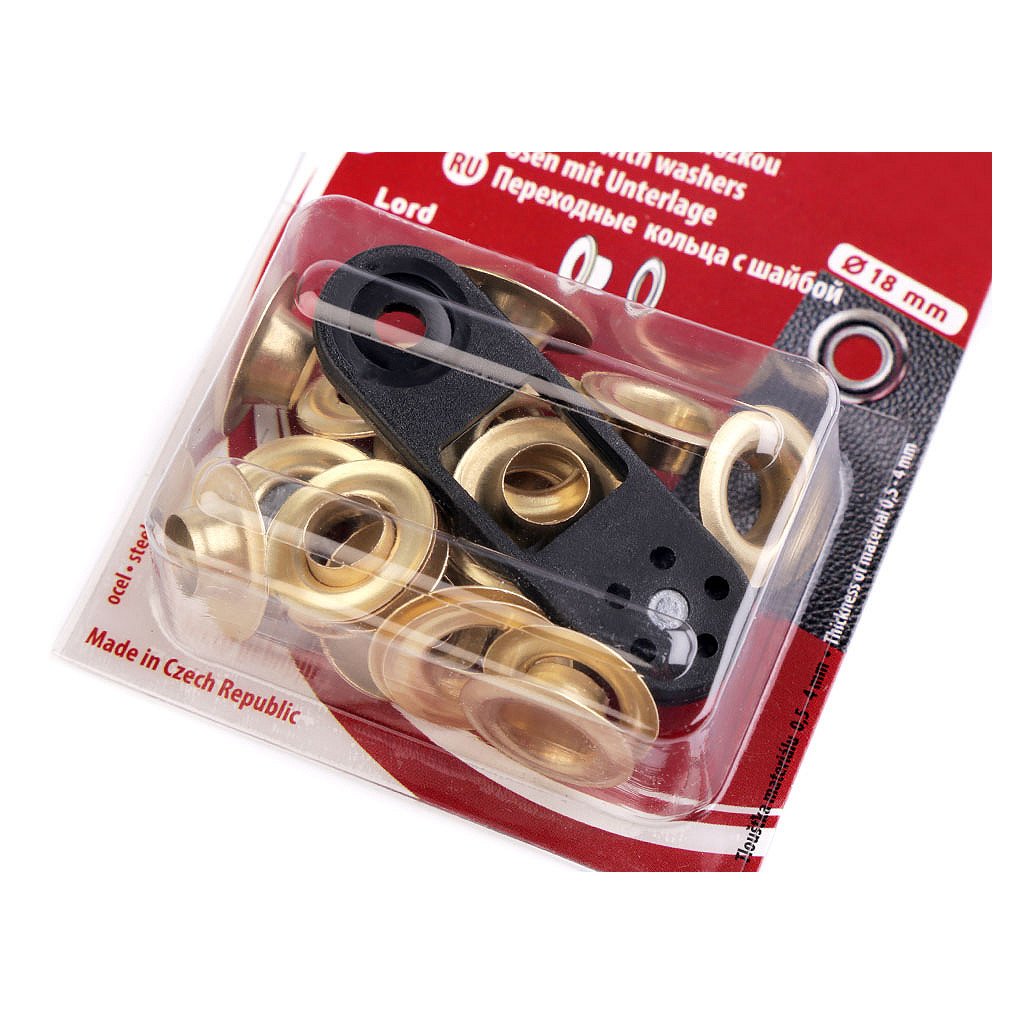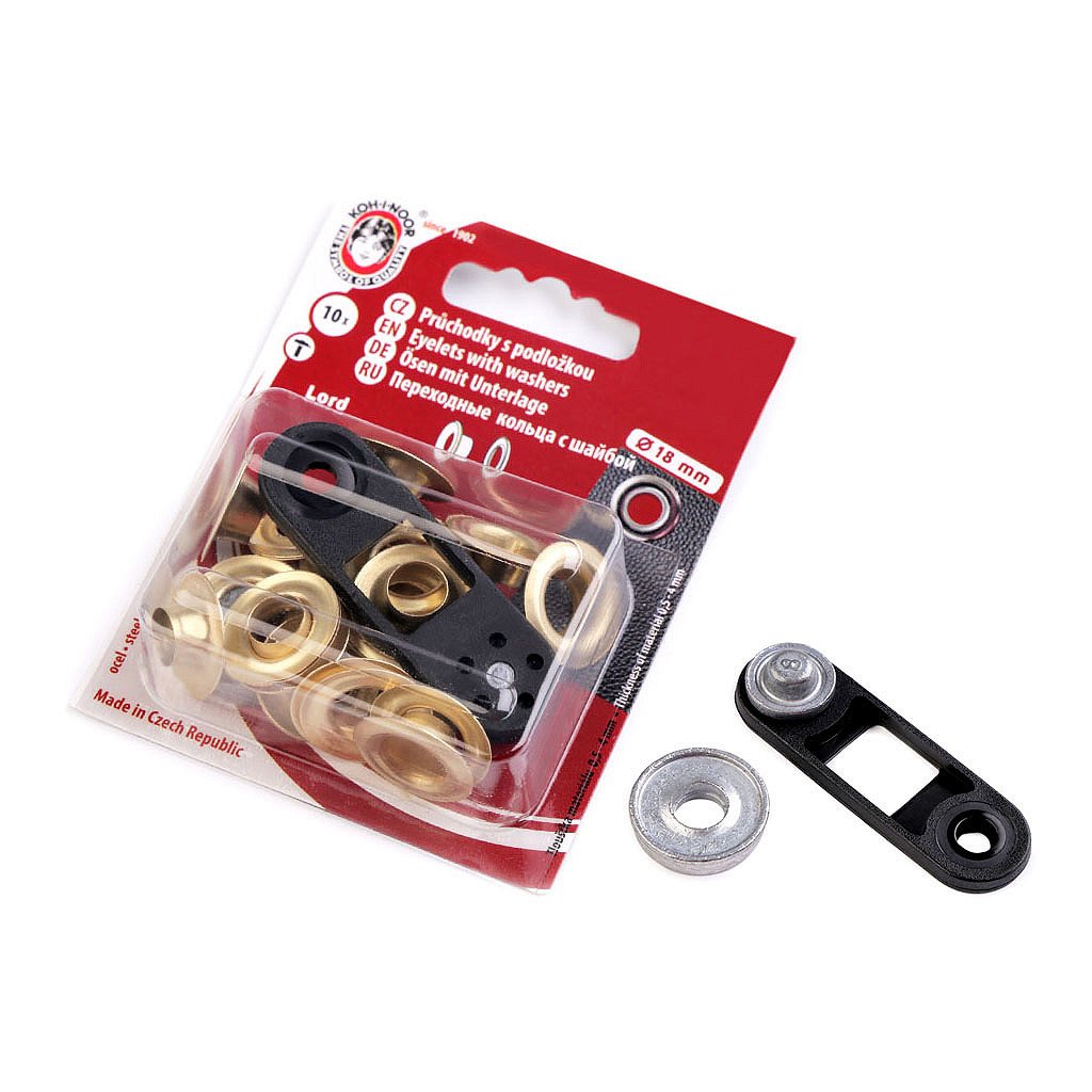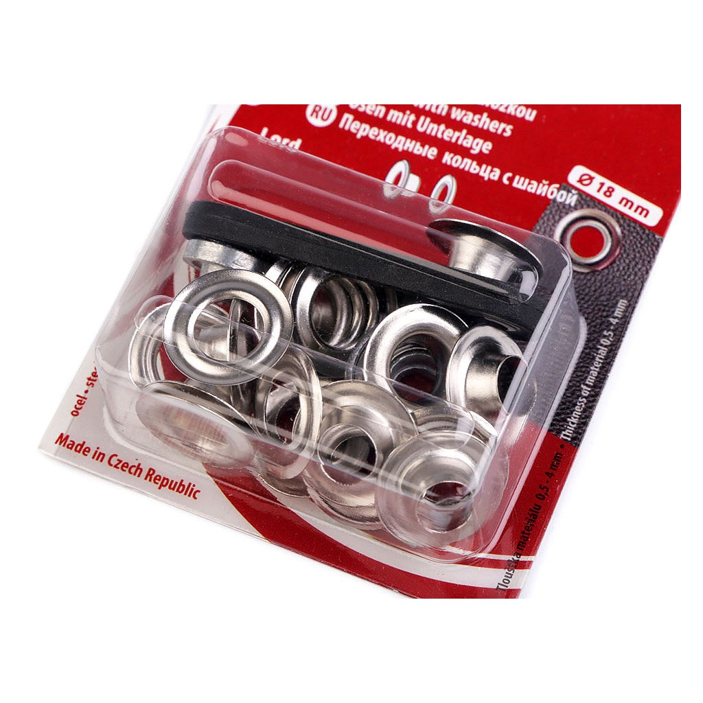 Průchodky se používají na šňůry, nebo jako výztuž větracích otvorů či plachet apod. V blistru je 10 párů. Jsou vyrobené z kovu a hrozí jím rezivění.