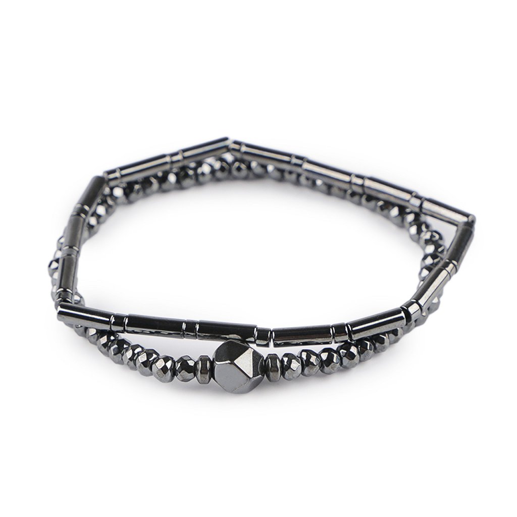 Sada 2 elegantních náramků vyrobených z korálků pokoveného hematitu. Díky pružence se náramky snadno natahují na ruku, mají univerzální velikost. Patří mezi šperky, které díky své zajímavé povrchové úpravě zaujmou na první pohled. Náramky potěší každou ženu, jsou dárkem, se kterým nešlápnete vedle. Hodí se k běžnému nošení i slavnostním příležitostem, skvěle podtrhnou i business styl oblékání.