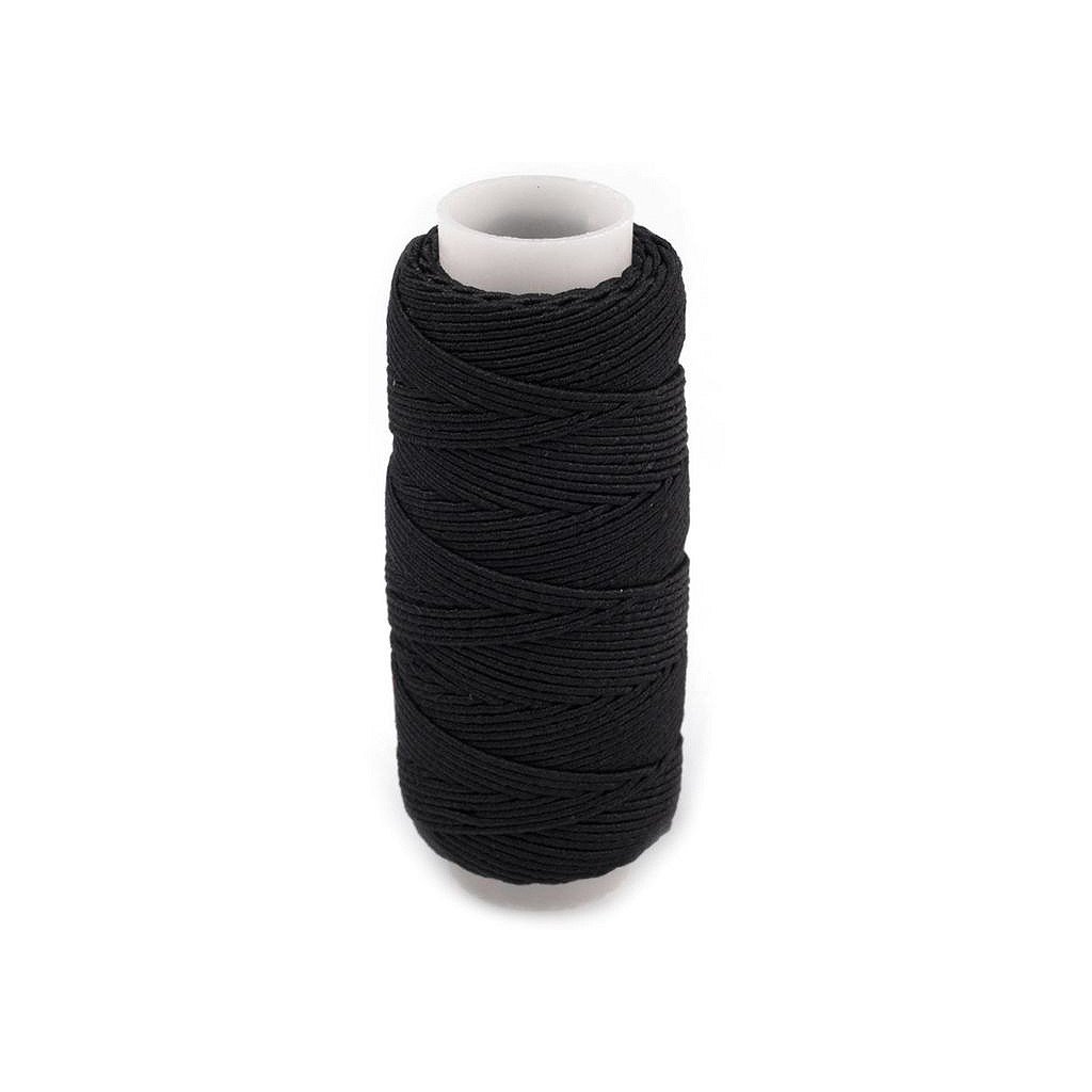 Nit je pružná a kvalitní. Můžete ji použít na navlékání různých druhů perliček nebo ji využít k technice vrapování, tzn. stahování látky pomocí navlečené úzké kulaté gumy.