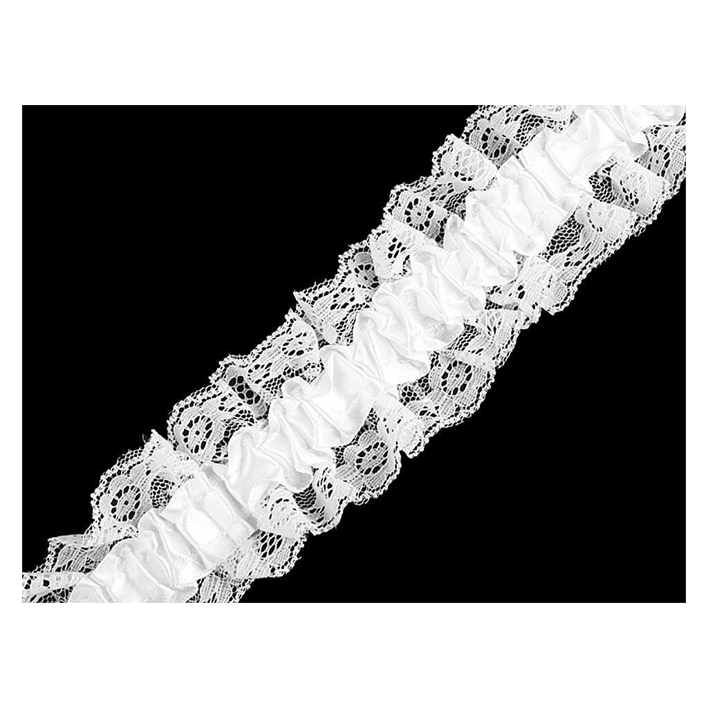 Pružný volánek s krajkou je jako stvořený pro výrobu svatebních podvazků. Využijete ho i na jiné svatební dekorace či aranžmá. Je vhodný také k olemování spodního prádla a korzetů.