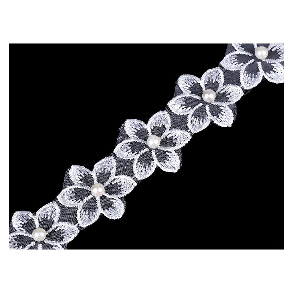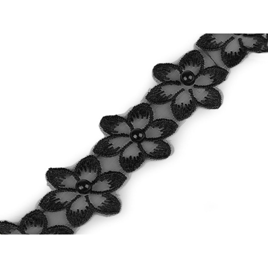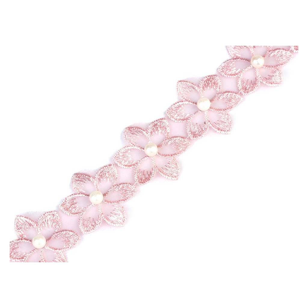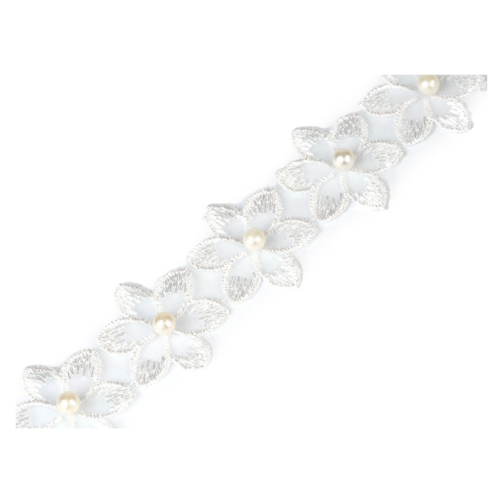 Prýmek s květy a perlou dodá romantický vzhled vašim šatům, halenkám nebo svetříkům. Perly jsou přinýtované. Květy můžete rozstříhat a použít zvlášť.