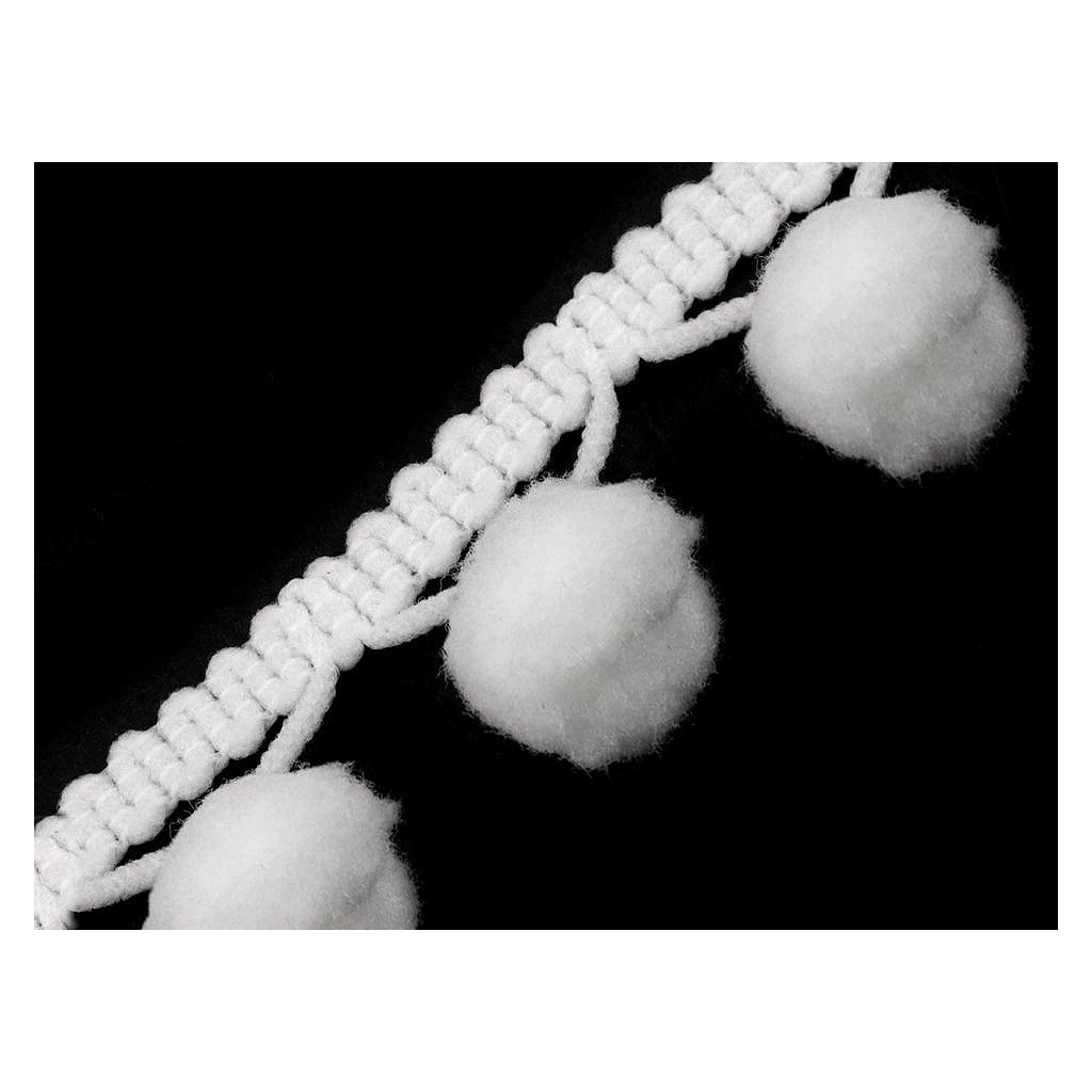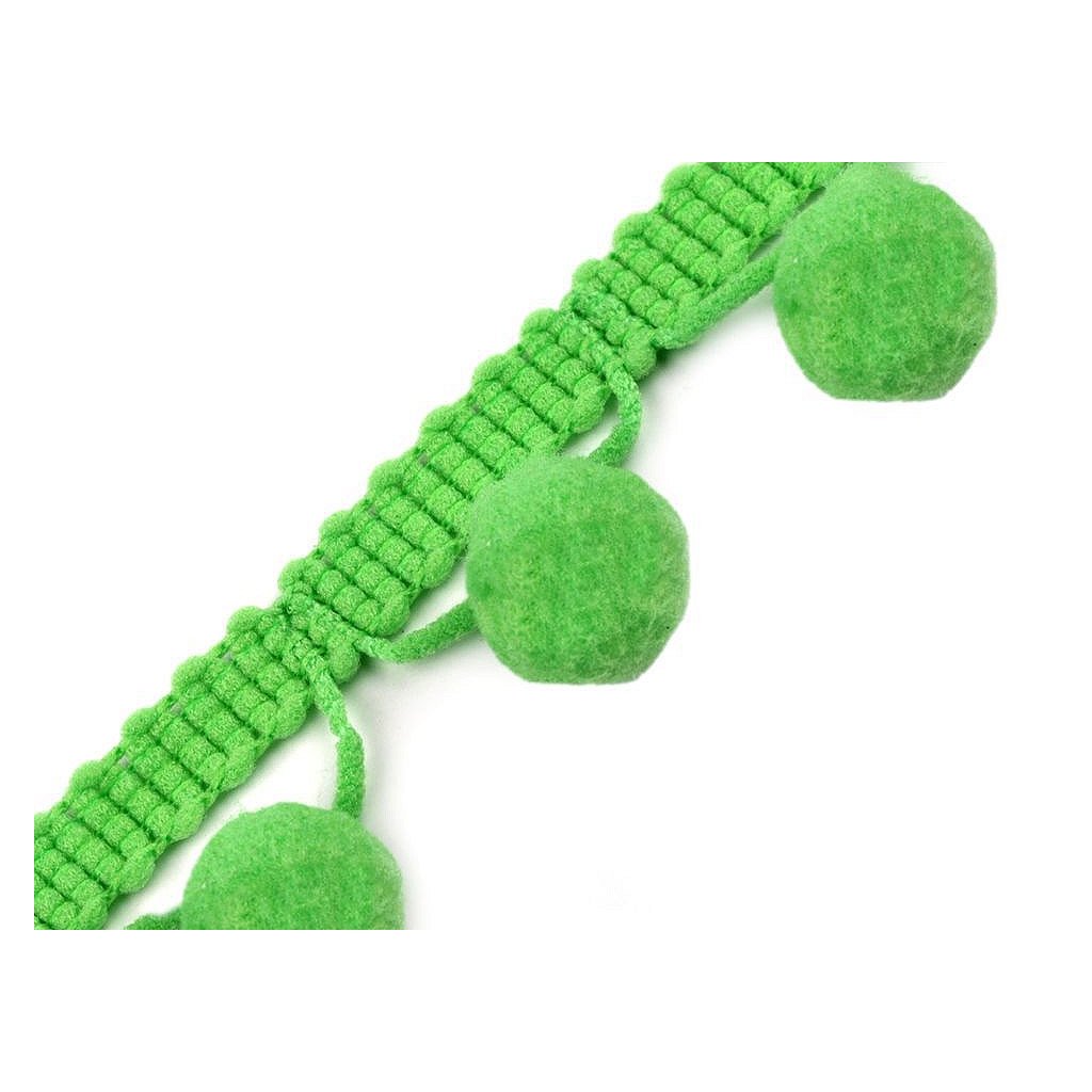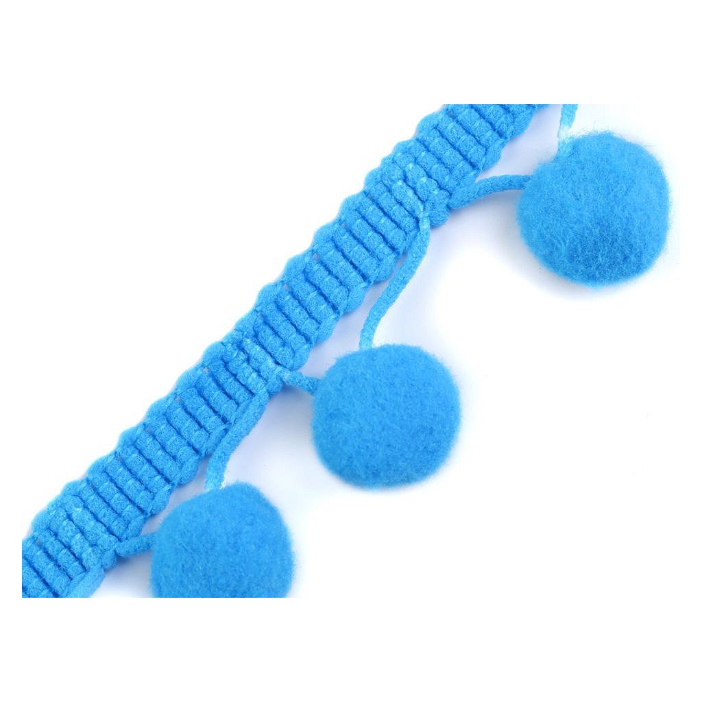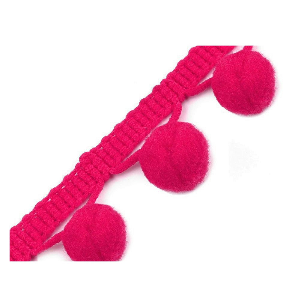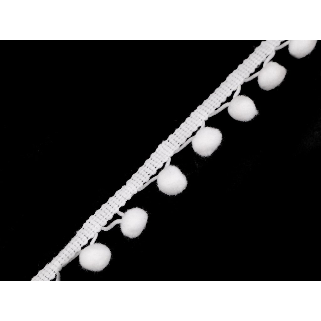 Oděvní prýmek s bambulkami můžete použít nejen pro dětské oděvy a výzdobu interiéru dětského pokoje, ale také pro ozvláštnění bytových doplňků, oblečení pro dospělé i oděvní doplňky např. šály a šátky. Šířka prýmku i s bambulkou je 30 mm, průměr bambulek je cca 13 mm.