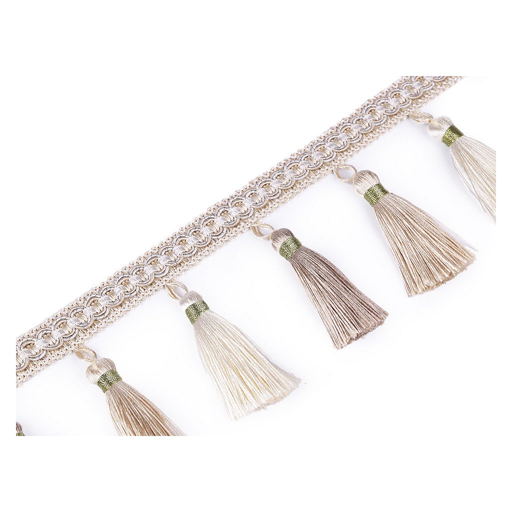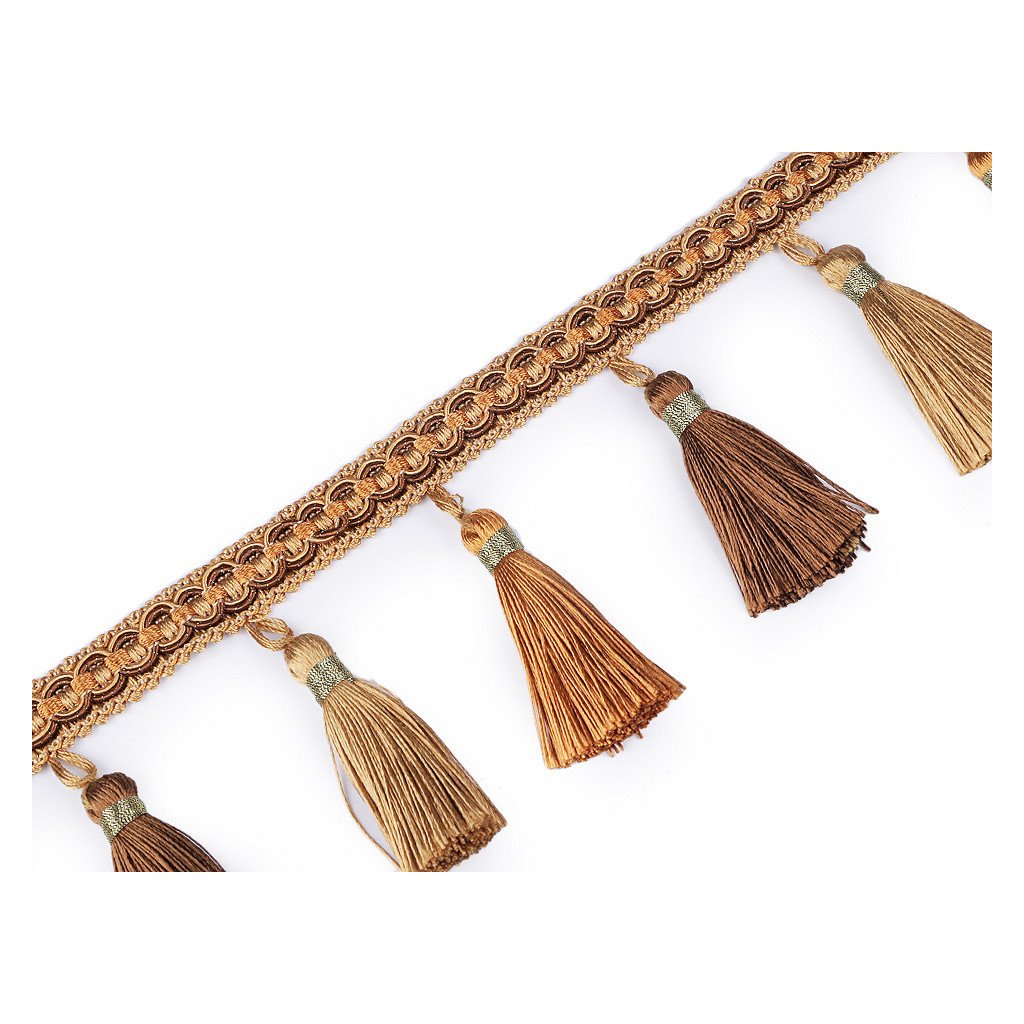 Prýmek se střapci využijete na ozdobení závěsů či olemování nábytku (křesel, pohovek apod.). Na 1 m prýmku je 20 střapců.- Celková šíře: 95 mm