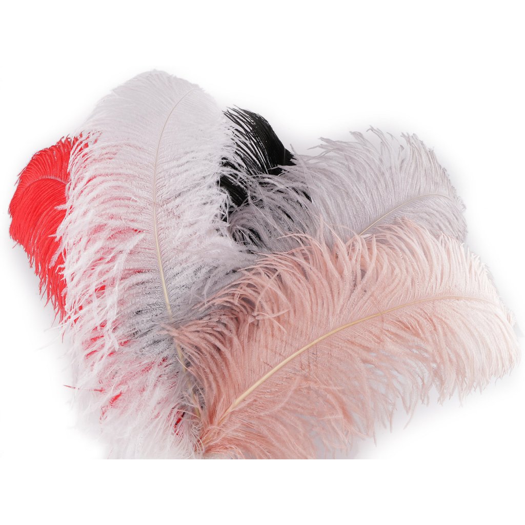 Ozdobné pštrosí peří má velký podíl jemného chmýří, díky tomu působí luxusně. Využijete jej k dekoračním účelům. Vzhledem k tomu, že to je přírodní materiál, může mít každé pero jiné zakřivení a jiný tvar. Šířka peří je cca 25 cm.