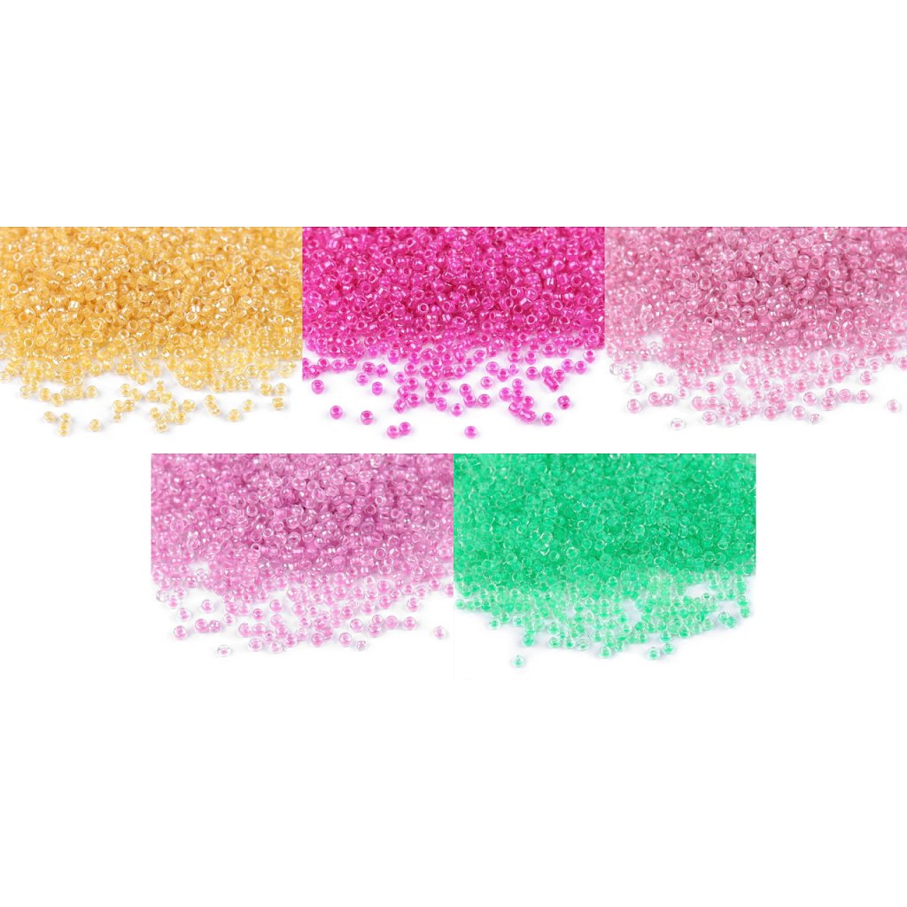 Rokajl s barevným průtahem je na pohled velice efektní, krásně se leskne. Využijete jej pro tvorbu bižuterie a vánočních ozdob. Je poměrně pravidelný, s nepatrnými odchylkami, hodí se na výrobu stromečků z korálků, navlékané několikařadé náhrdelníky, zdobení oděvů našitím rokajlu pomocí aari jehly, na vánoční ozdoby, apod.