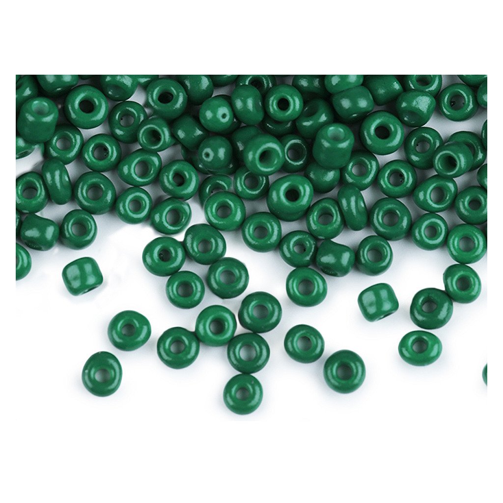 Korálky č. QK12 - tmavě zelené nemají metalický lesk.