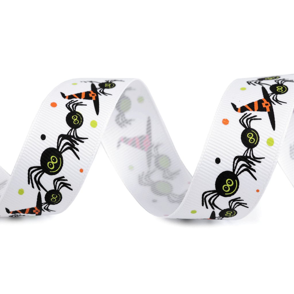 Rypsovou stuhu s halloweenským designem oceníte při aranžování. Potisk je jednostranný.