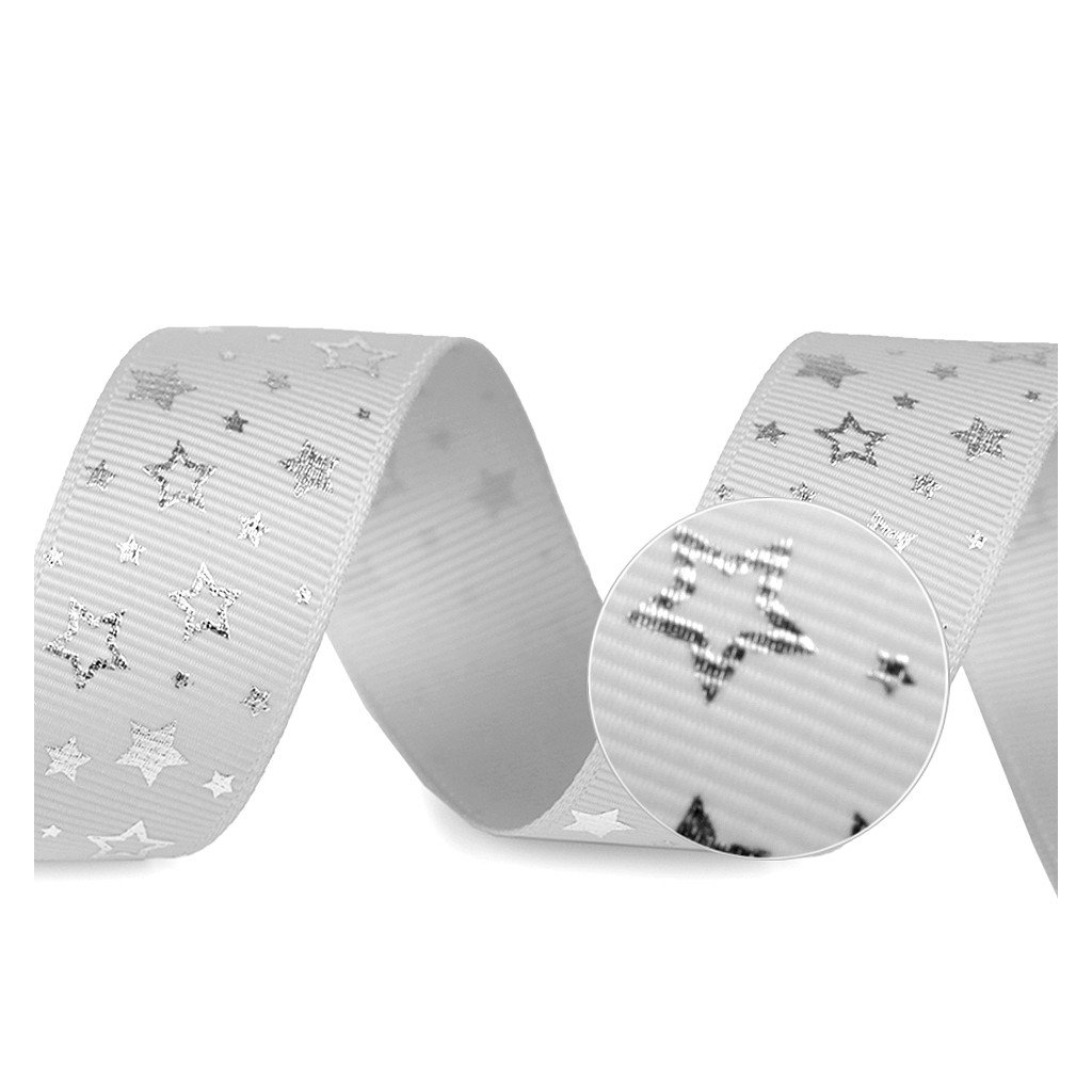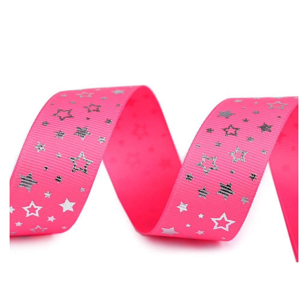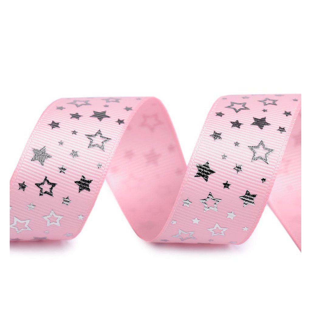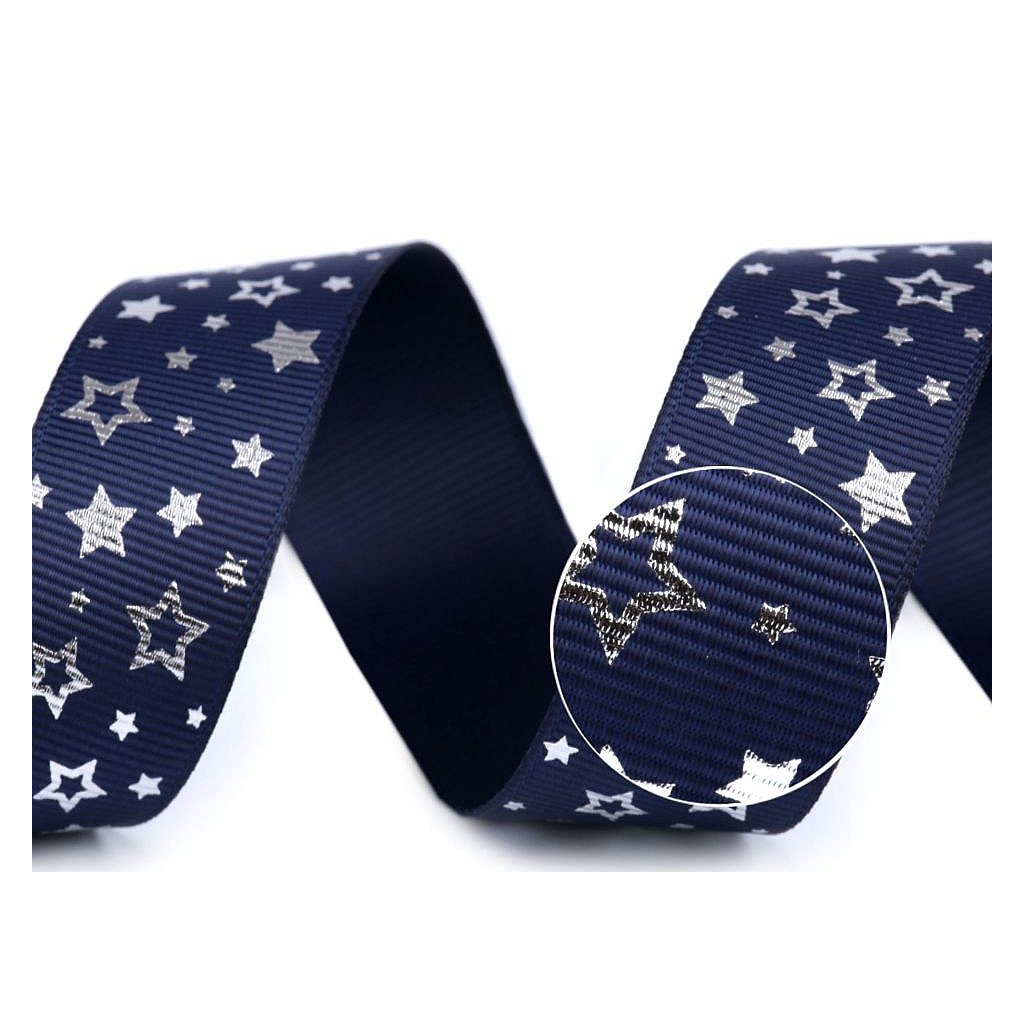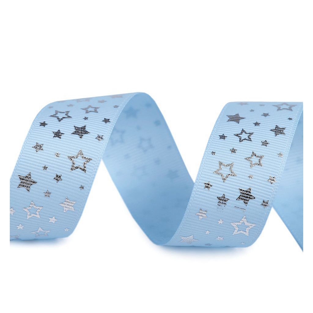 Dekorační rypsová stuha s potiskem hvězdiček má na povrchu typické jemné žebrování. Potisk je jednostranný.