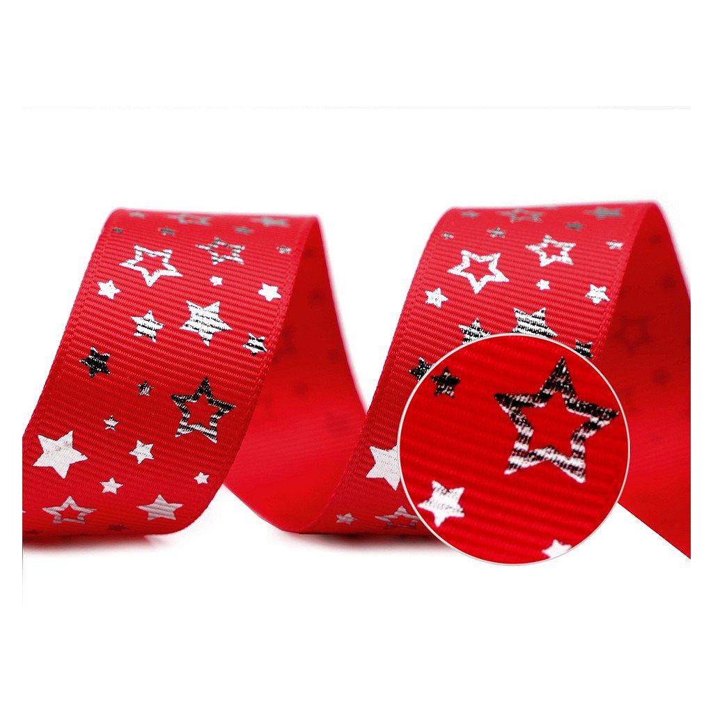 Rypsová stuha hvězdy šíře 25 mm vánoční