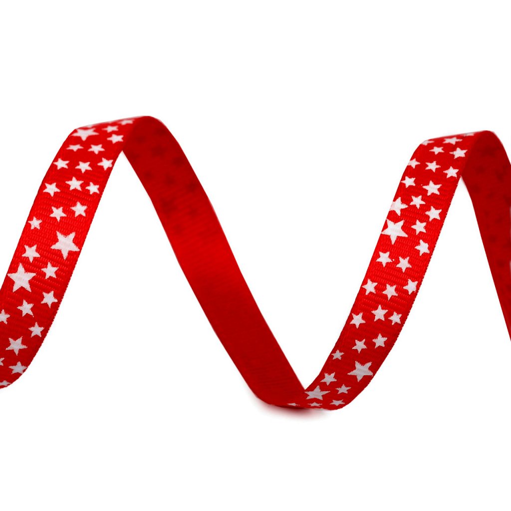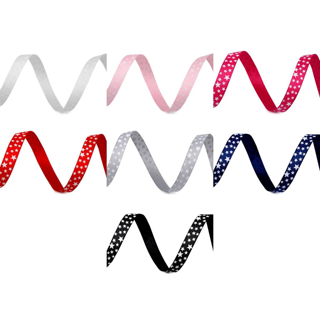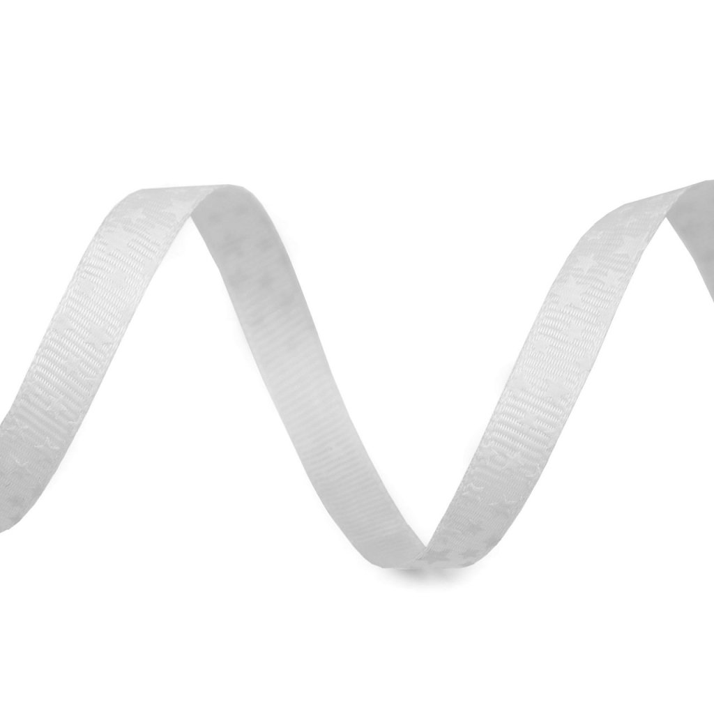 Dekorační rypsová stuha s potiskem hvězdiček je velmi atraktivní. Na povrchu má typické jemné žebrování. Potisk je jednostranný.