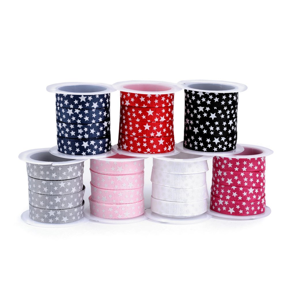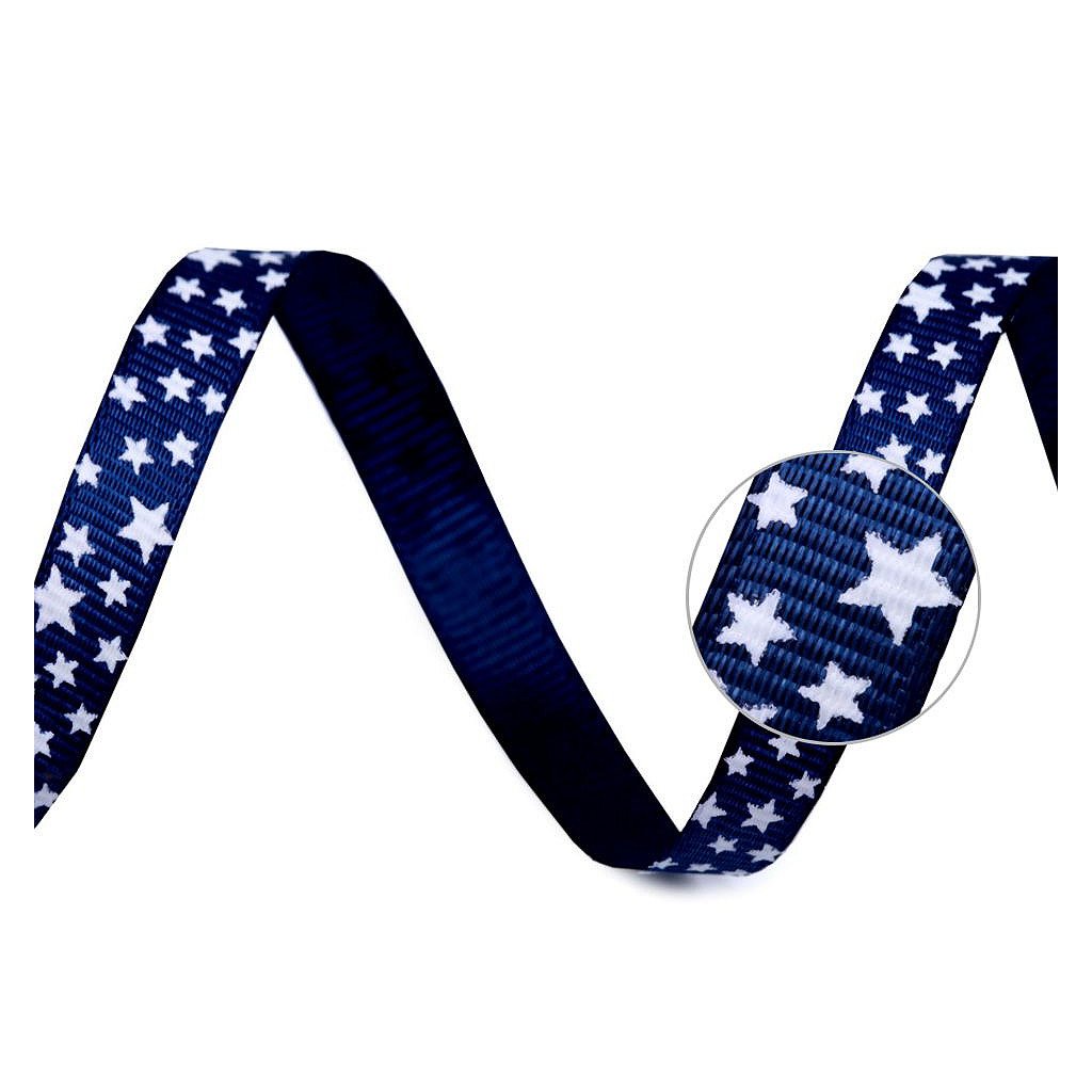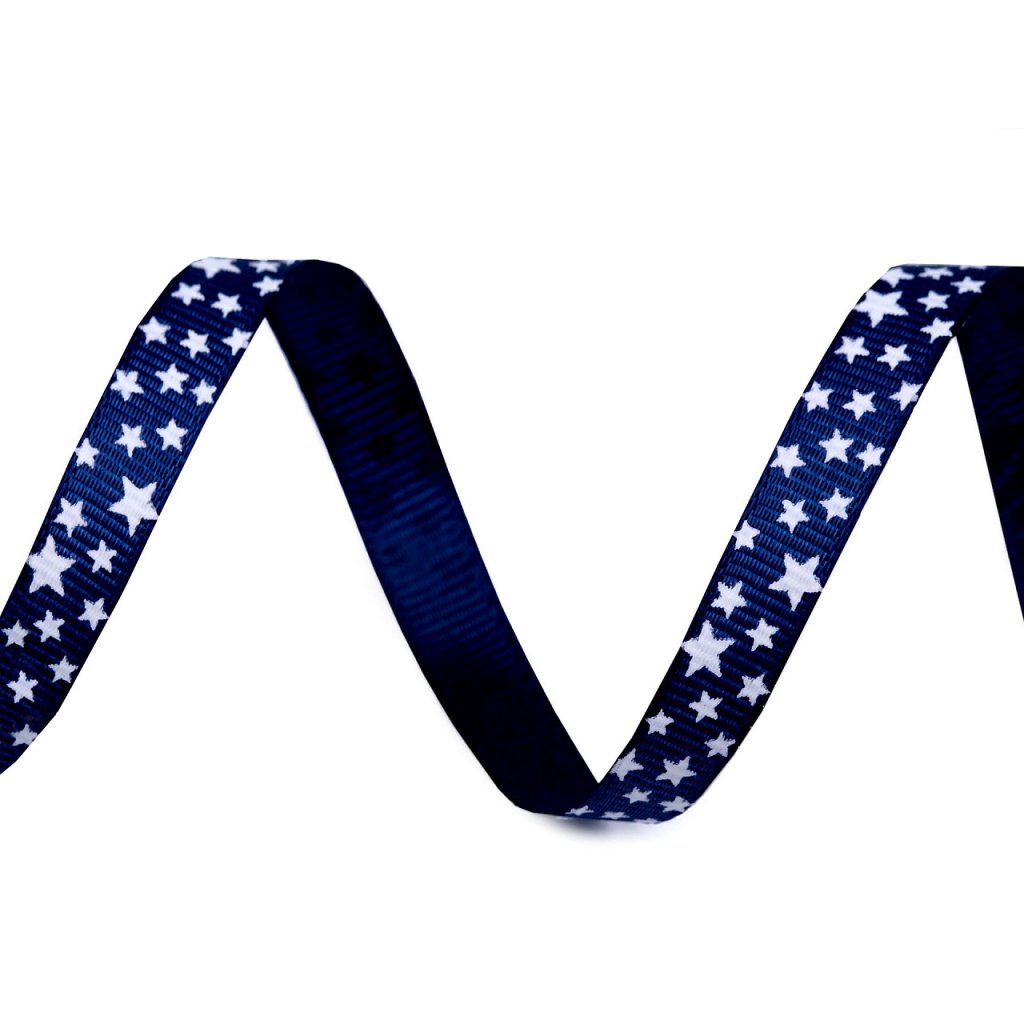 Dekorační rypsová stuha s potiskem hvězdiček je velmi atraktivní. Na povrchu má typické jemné žebrování. Potisk je jednostranný.