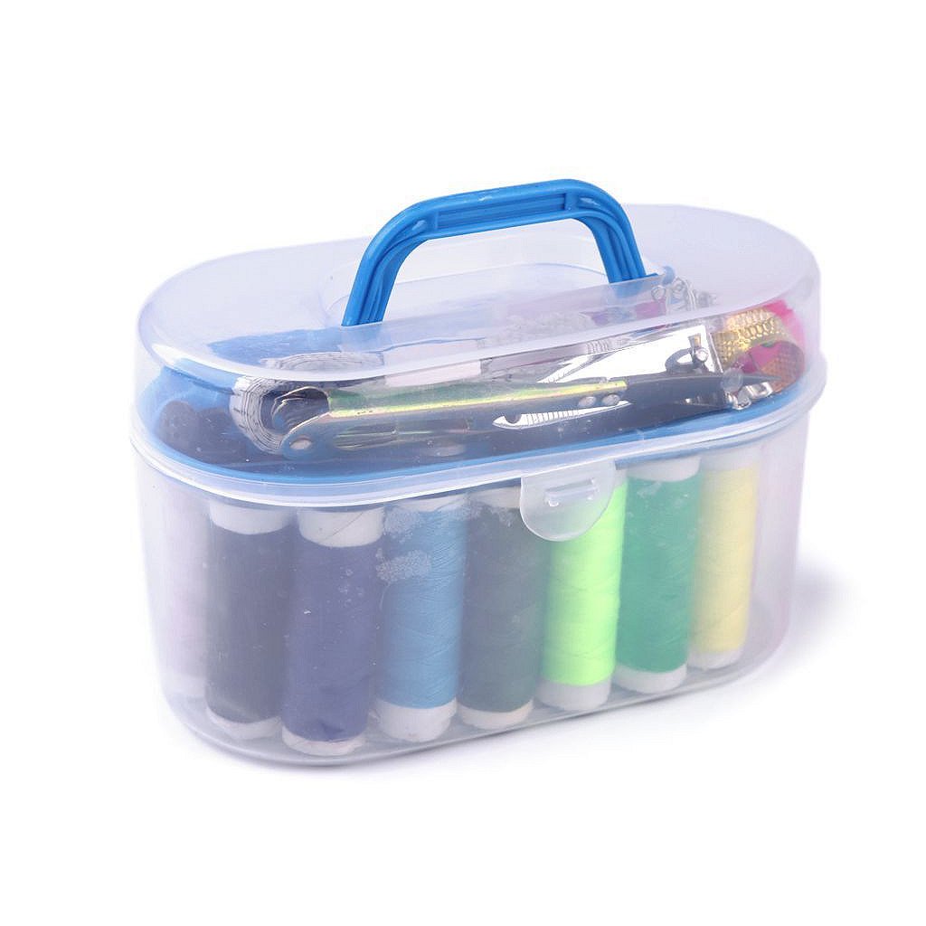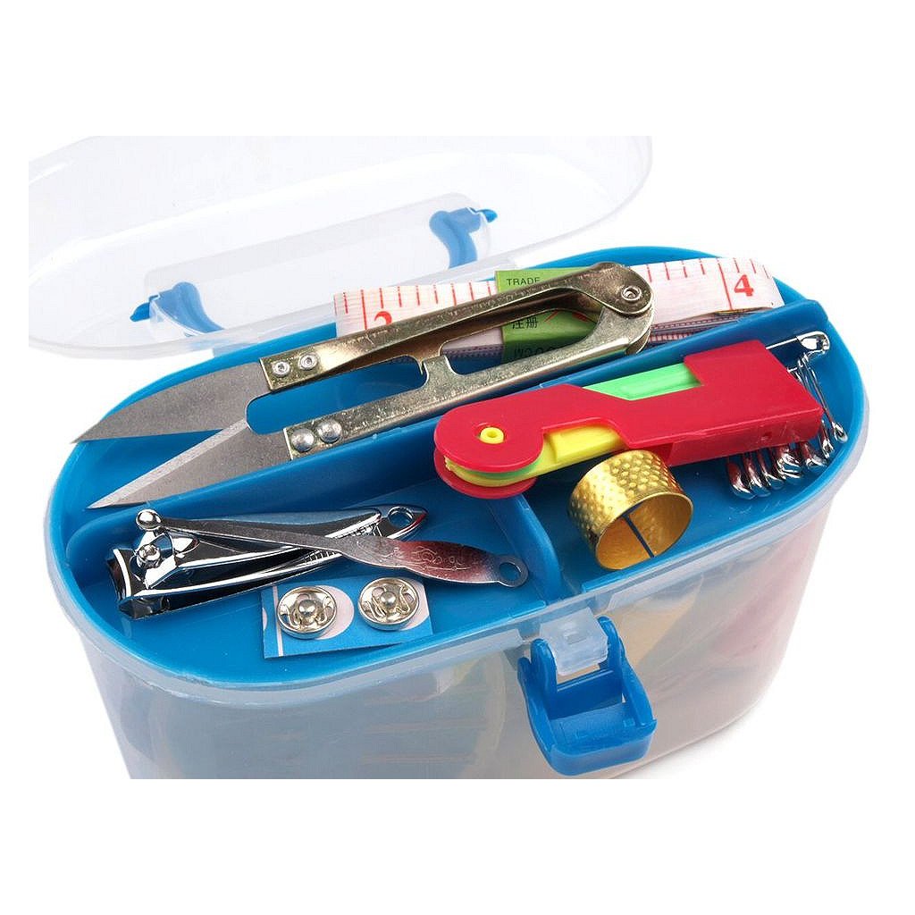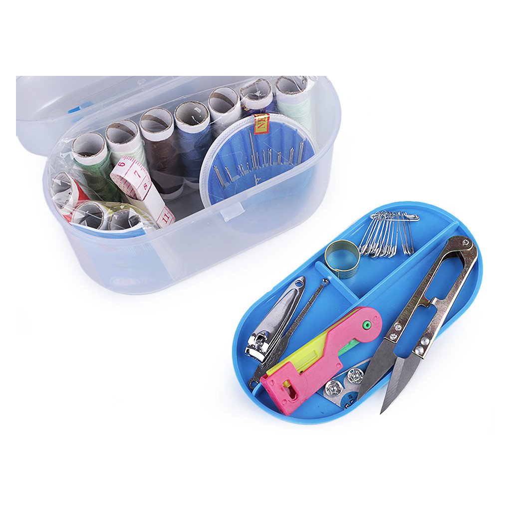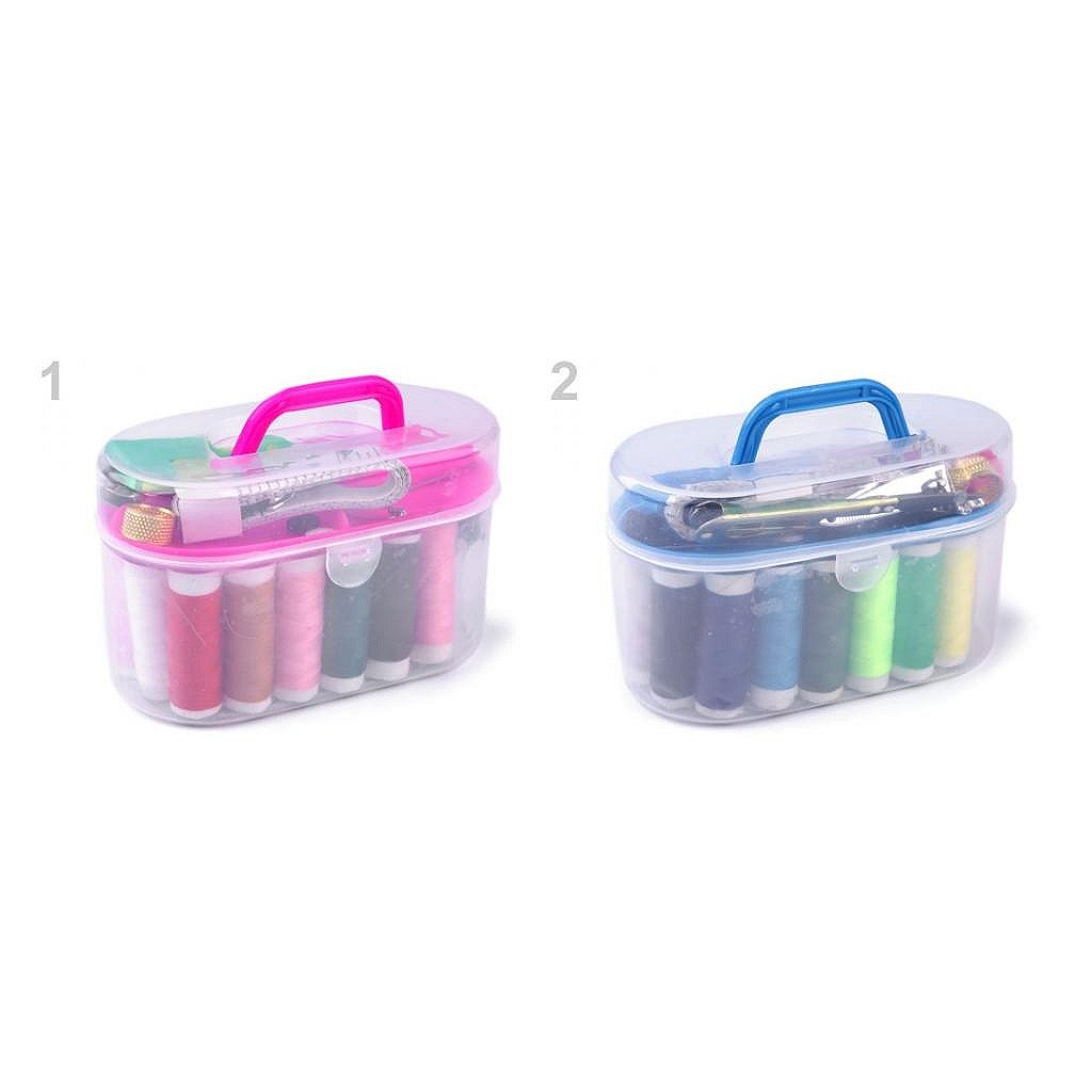 Sada na šití v praktickém plastovém boxu obsahuje všechny základní věci, které potřebujete k šití nebo opravení vašeho oblečení. Box se skládá ze dvou částí - z kufříku a odnímatelného patra uvnitř. Zapínání na boxu se může lišit.