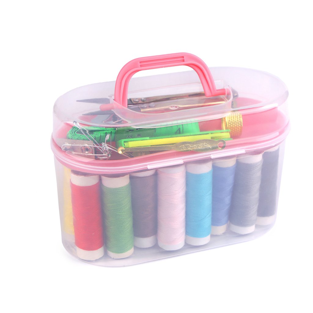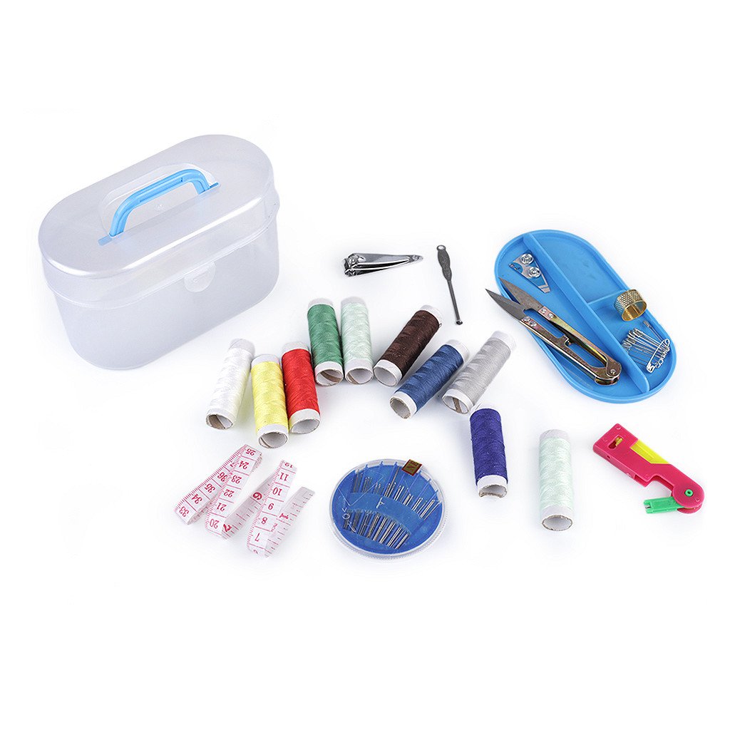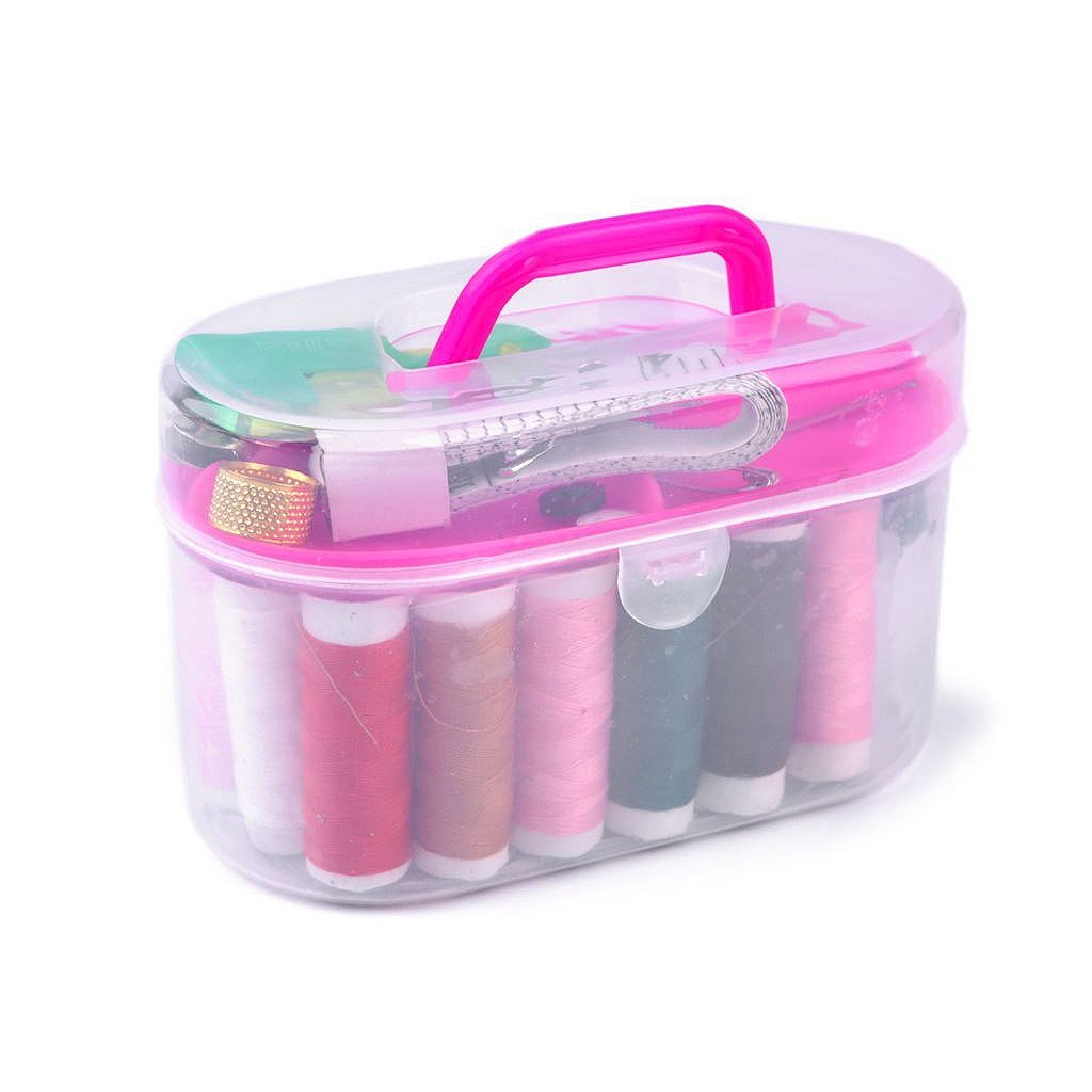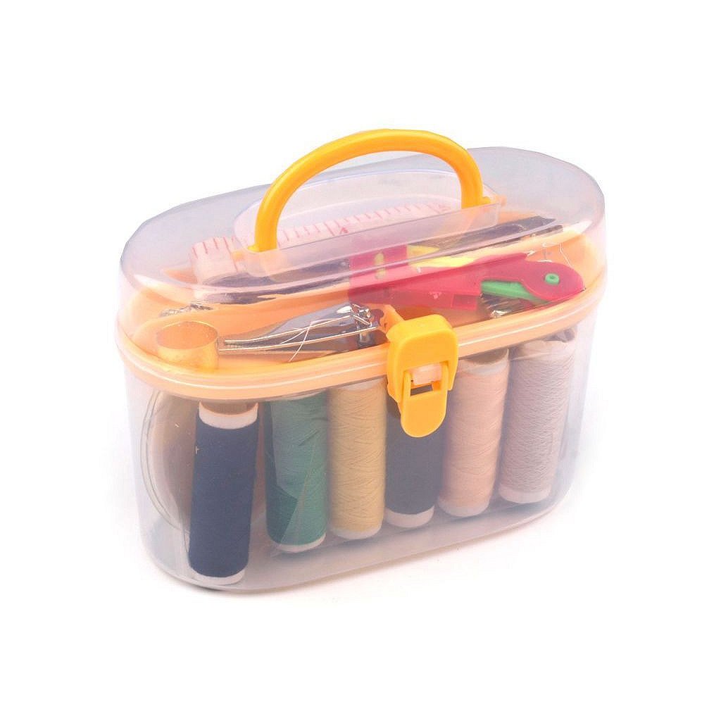 Sada na šití v praktickém plastovém boxu obsahuje všechny základní věci, které potřebujete k šití nebo opravení vašeho oblečení. Box se skládá ze dvou částí - z kufříku a odnímatelného patra uvnitř. Zapínání na boxu se může lišit.