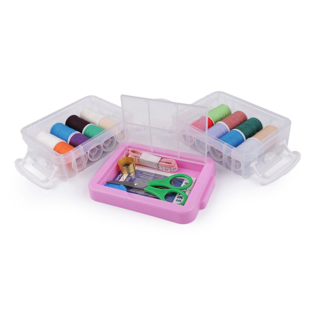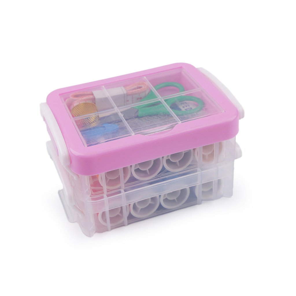 Sada na šití v praktickém plastovém boxu obsahuje všechny základní věci, které potřebujete k šití nebo opravení vašeho oblečení. Box je dvoupatrový.