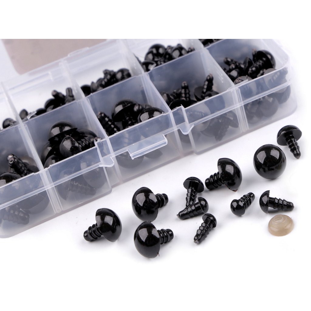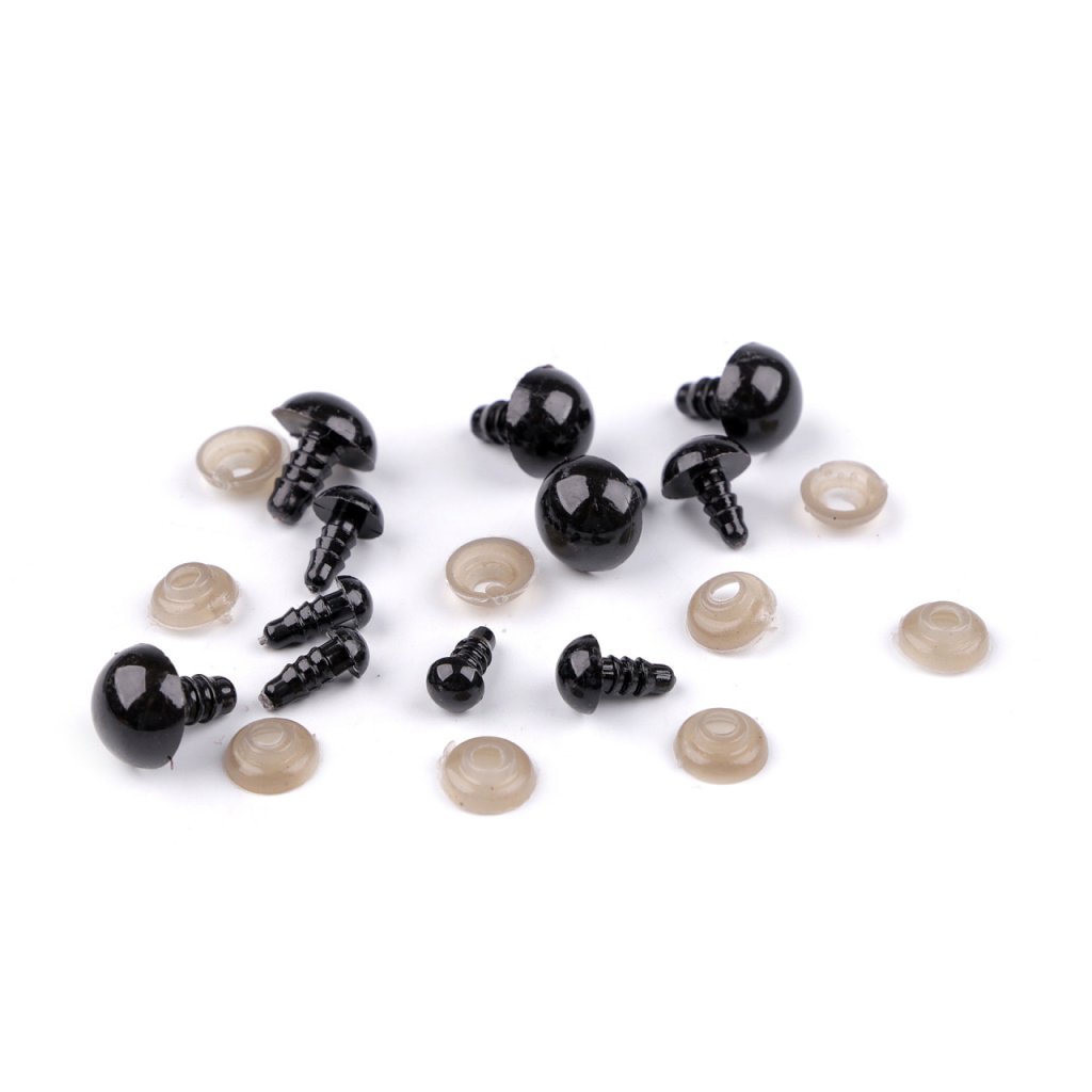 Souprava černých polokulatých bezpečnostních očí je ideální pro kreativce, kteří rádi vyráběji zvířátka a dekorační postavičky. Mají závit, který se provleče materiálem, a z druhé strany se pak nacvakne pojistka, která oči bezpečně připevní na místo.