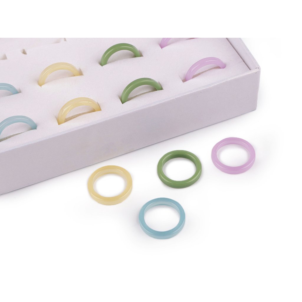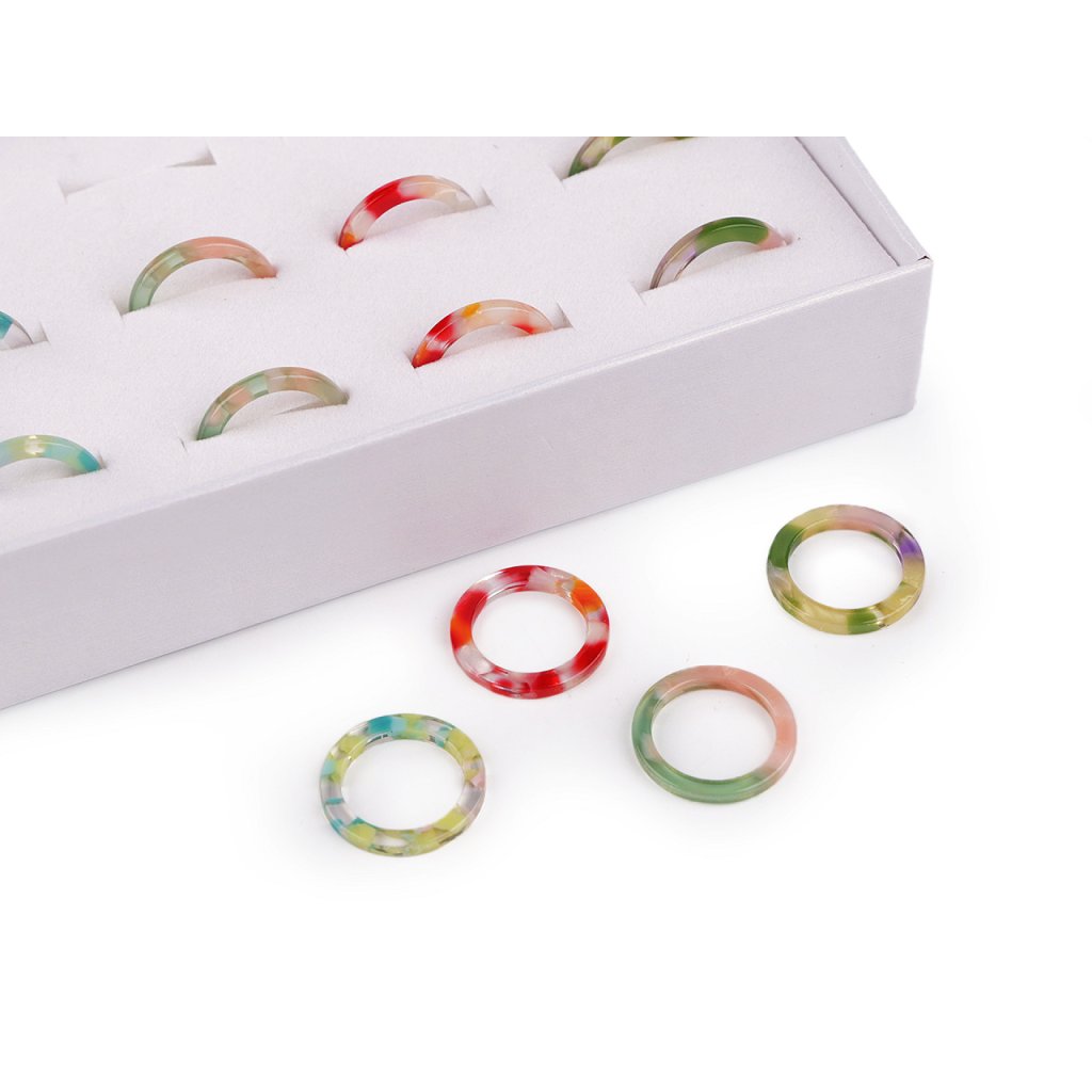Mix plastových prstýnků je zabalený v papírové kazetě, která má průhledné plastové víko. Je ideální na prodejní prezentaci.