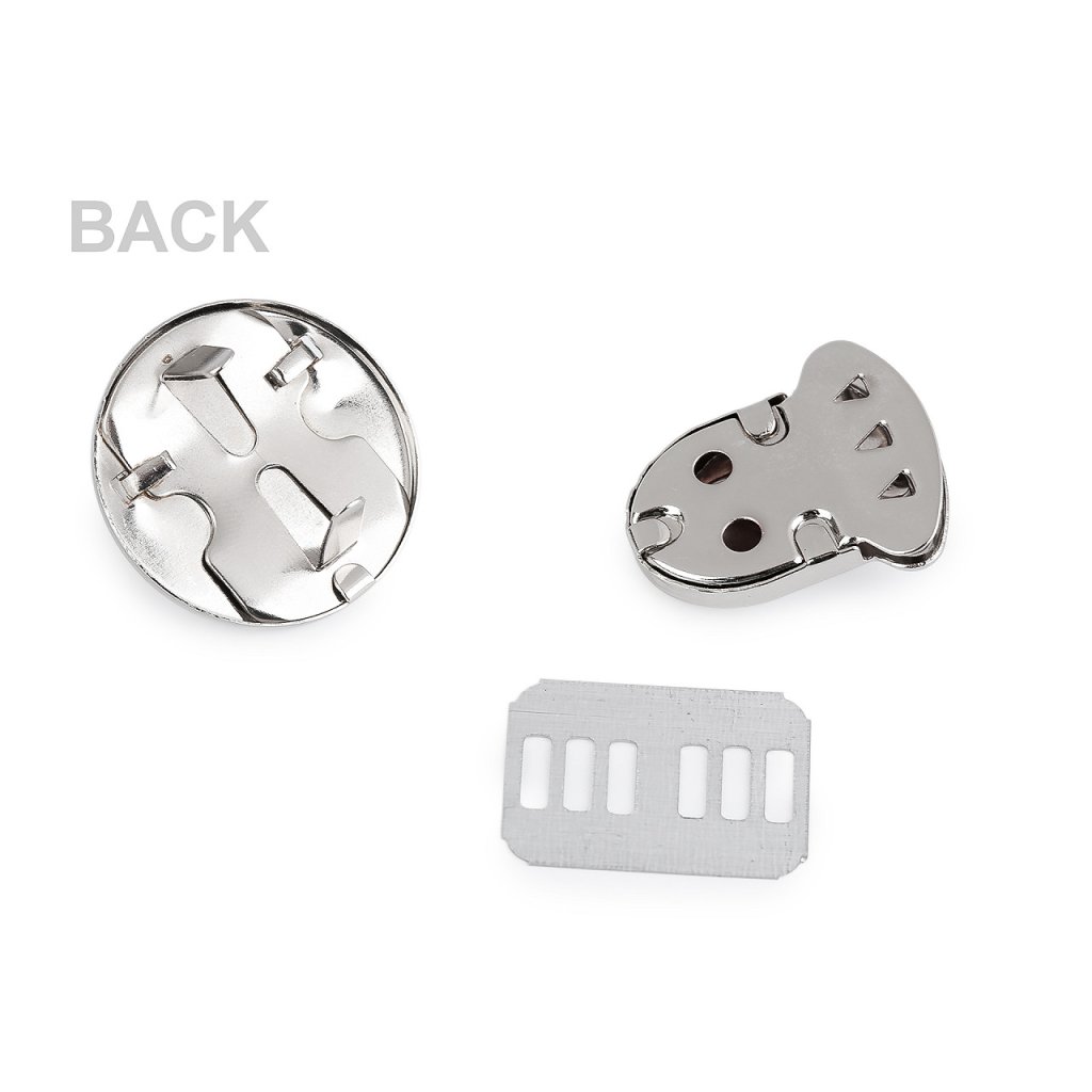 Sada zapínání využijete na kabelku, tašku nebo batoh. Skládá se ze tří dílů. Díl s nožičkami se pomocí plíšku připevní na vnější část tašky a další díl na její chlopeň. Díl na chlopeň se upevní tak, že rozevřete čelisti, na kterých jsou zoubky a mezi ně vložíte materiál, na který chcete zapínání upevnit. Následně čelisti sevřete, zoubky tak zamezí pohybu látky. Zapínání zdobí knoflík ve tvaru srdíčka.