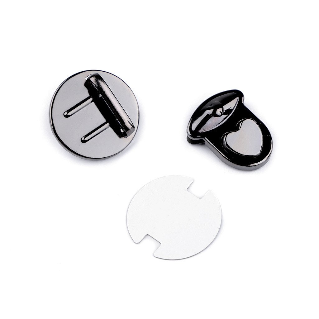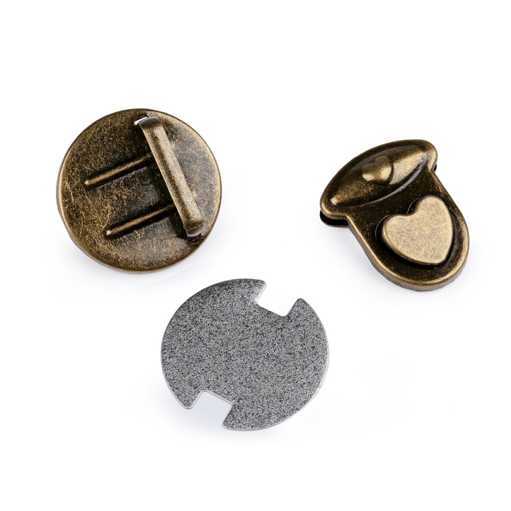 Sada zapínání na kabelku či tašku se skládá ze tří dílů. Jeden díl se připevní na vnitřní část tašky, druhý (s nožkami) na vnější část a třetí díl na její chlopeň. Díl na chlopeň se upevní tak, že rozevřete čelisti, na kterých jsou zoubky a mezi ně vložíte materiál, na který chcete zapínání upevnit. Následně čelisti sevřete, zoubky tak zamezí pohybu látky. Zapínání zdobí knoflík ve tvaru srdíčka.