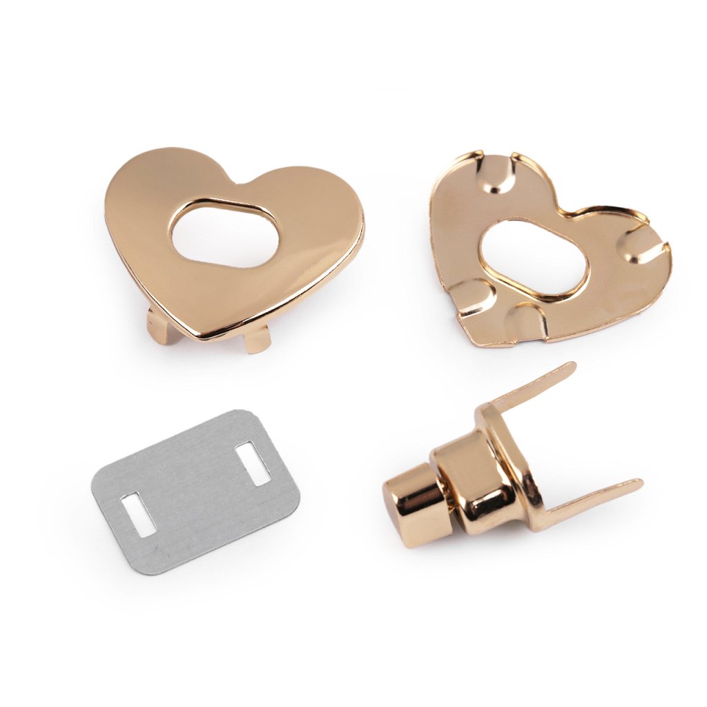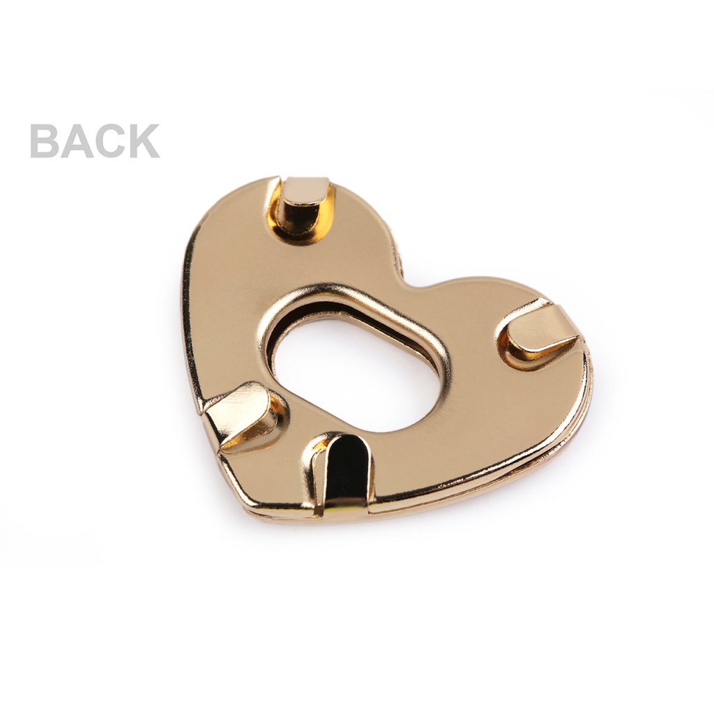Zapínání ve tvaru srdce na kabelku či tašku se skládá ze čtyř dílů. Plíšek se připevní na vnitřní část tašky, díl s nožkami na vnější část (nožky se zaháknou do plíšku a roztáhnou). Stejným způsobem se připevní i díly se srdcem - část s nožičkami se připevní na vrchní část chlopně.