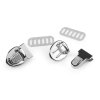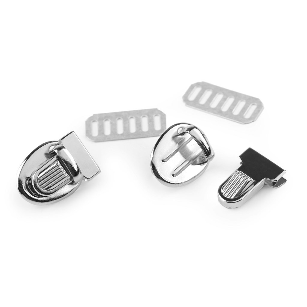 Mini kovové zapínání na psaníčko, kabelku, tašku či batůžek se skládá ze tří dílů. Plíšek se připevní na vnitřní část tašky, díl s nožkami na vnější část (nožky se zaháknou do plíšku a roztáhnou) a třetí díl se zoubky na její chlopeň. Díl na chlopeň se upevní tak, že rozevřete čelisti, na kterých jsou zoubky a mezi ně vložíte materiál, na který chcete zapínání upevnit. Následně čelisti sevřete, zoubky tak zamezí pohybu látky.
