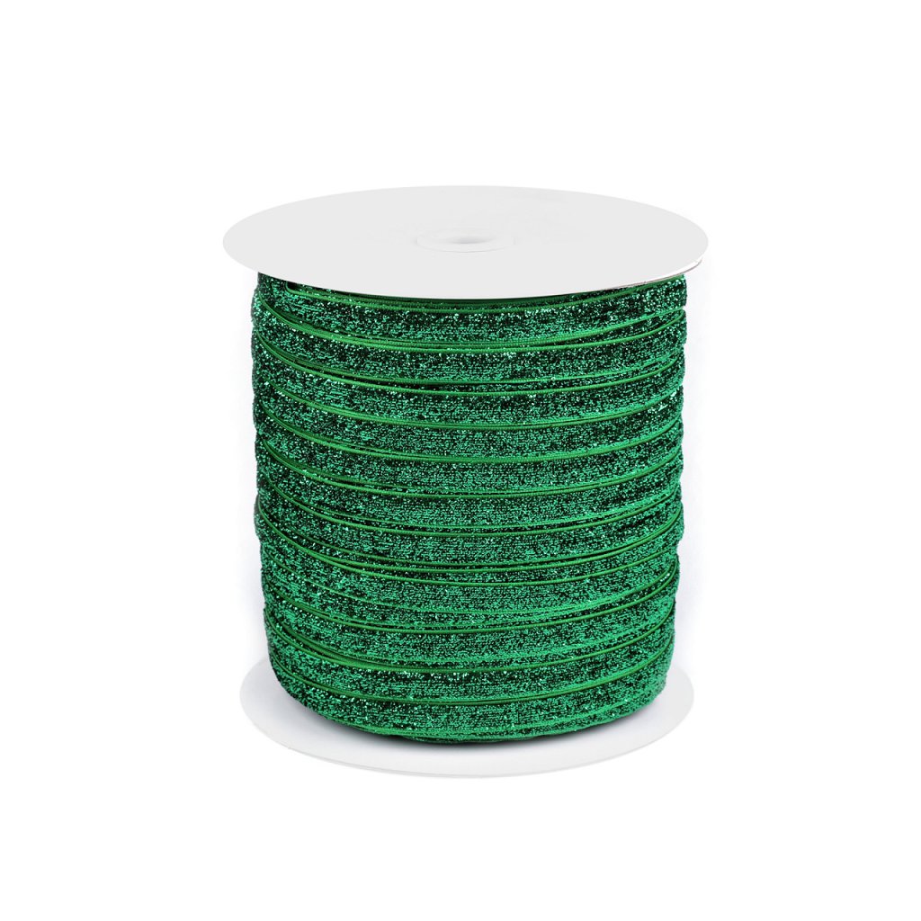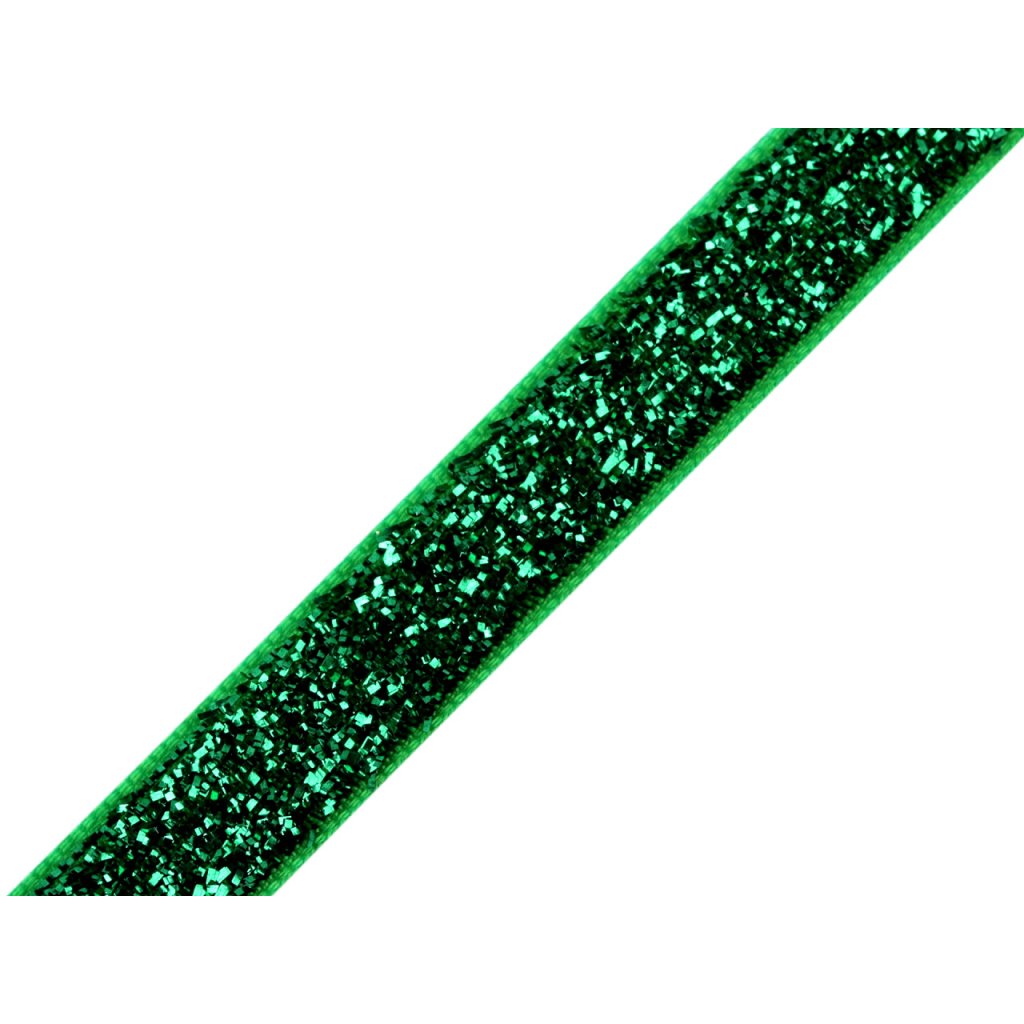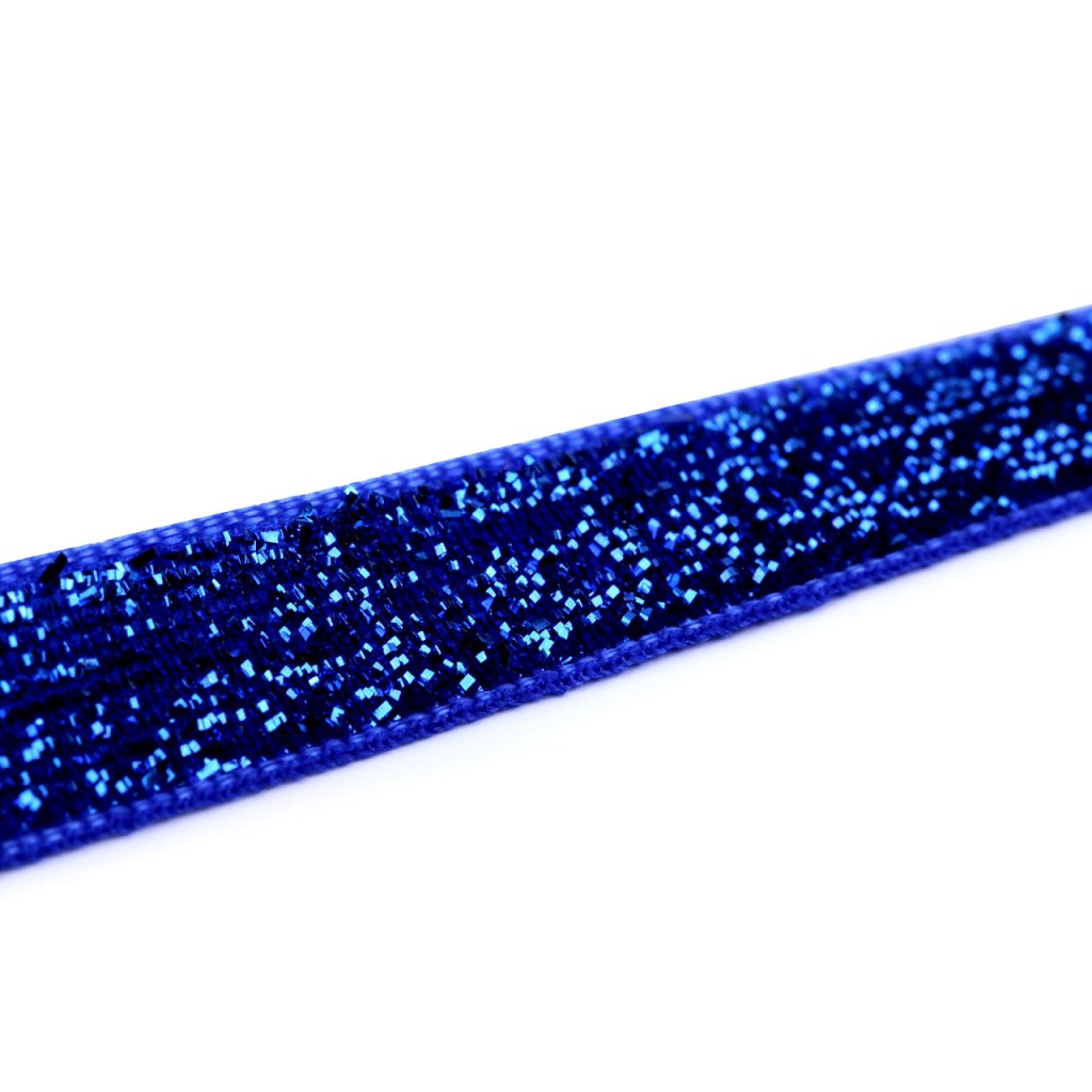 Třpytivá sametová stuha má horní stranu ozdobenou lurexem. Je jednostranná, velice kvalitní.