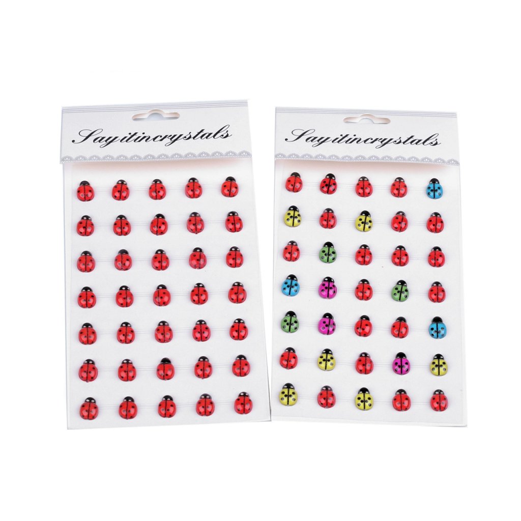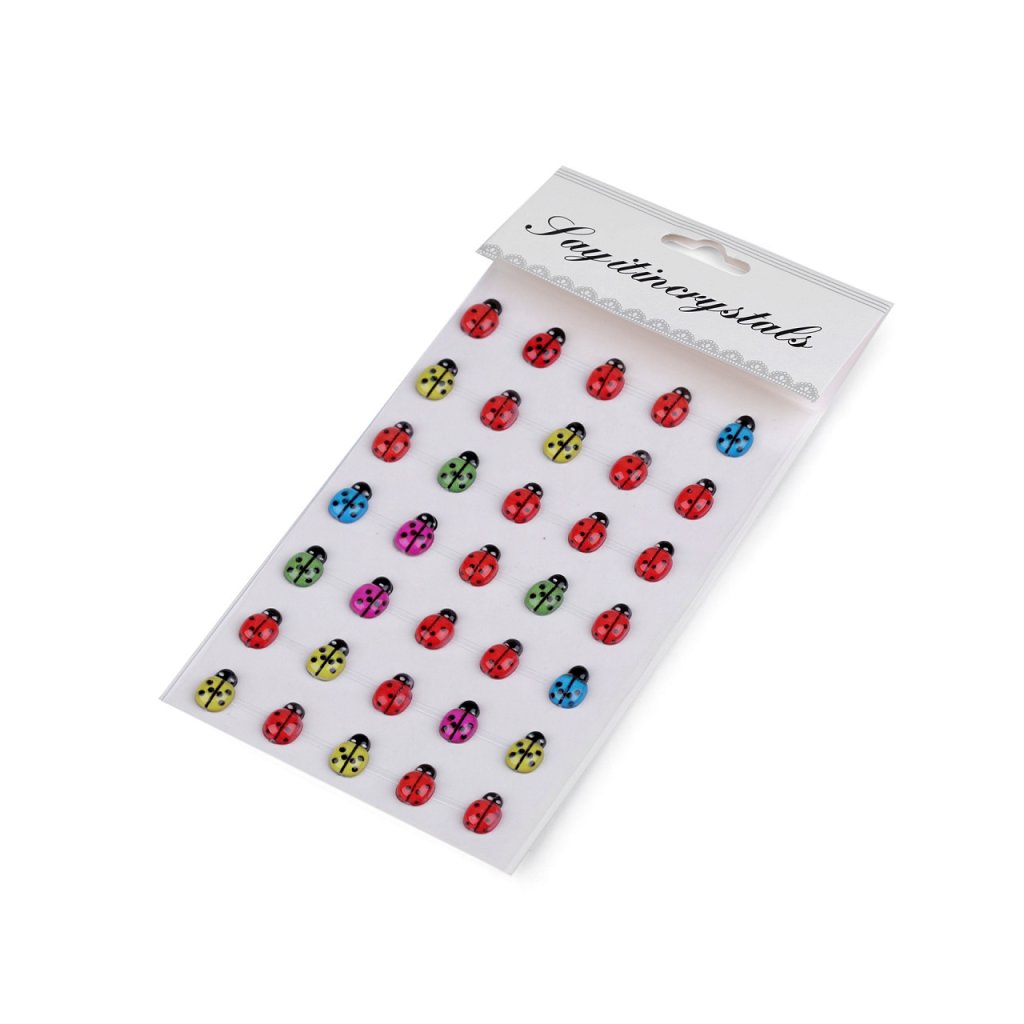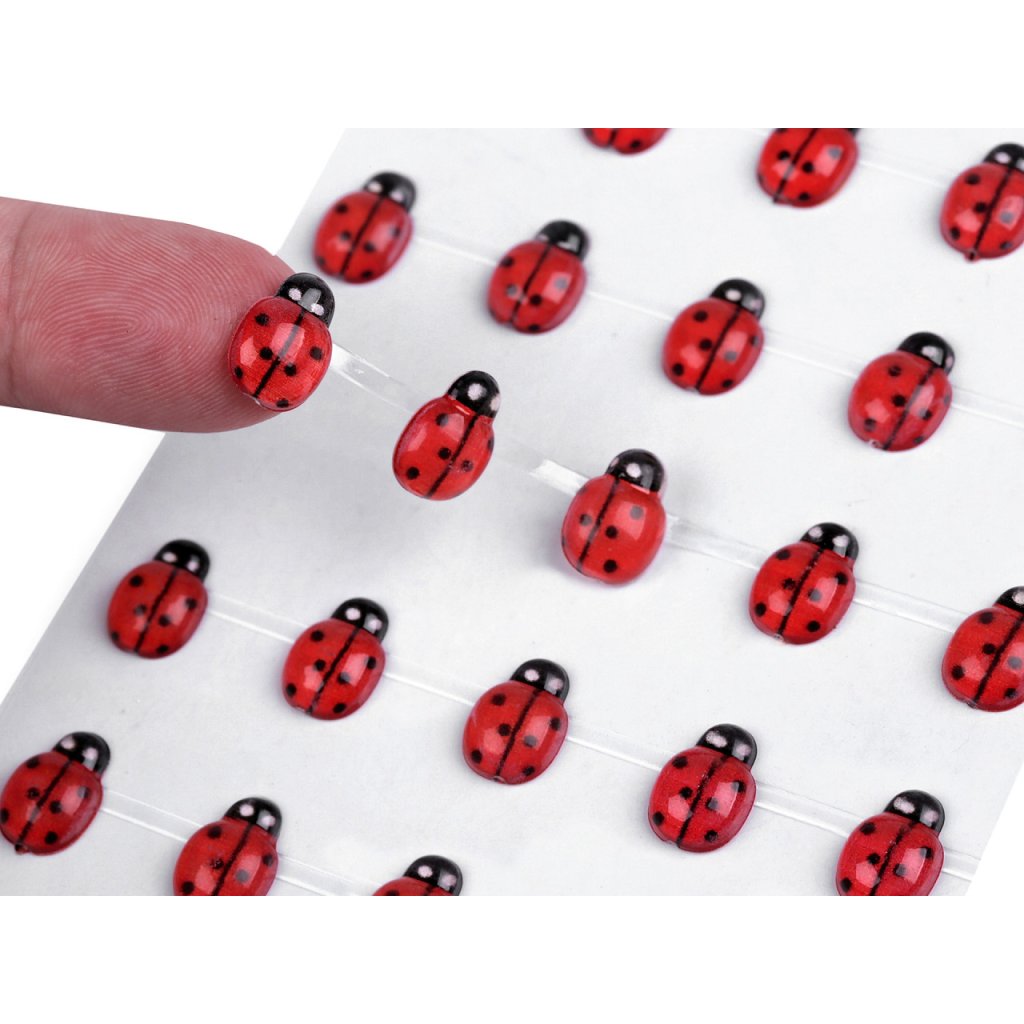 Samolepicí berušky jsou velice poutavé, mají 3D vypouklý tvar a krásné probarvení. Všechny jsou nalepené na jednom archu podkladové folie, ze které je stačí sejmout. Berušky jsou v řadách navzájem spojené lepícím proužkem, takže tvoří pásky. Celkem zde najdete 7 pásků (v každém je 5 berušek). Můžete je i nastříhat na jednotlivé kousky.