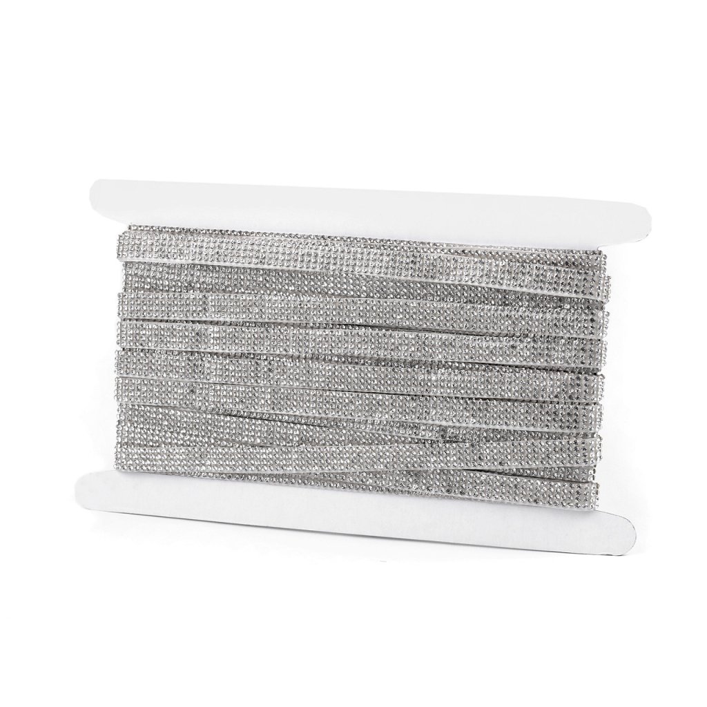 Třpytivá diamantová borta s broušenými kamínky upoutá pozornost svým elegantním designem a mnohostranným využitím. Je samolepicí, na spodní straně má pod ochranným papírem ukrytou samolepicí vrstvu. Bortu můžete nastříhat na libovolné kousky.