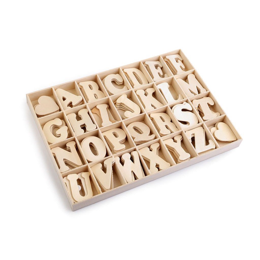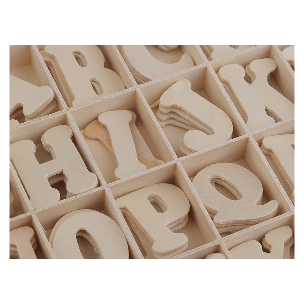 Dřevěná písmena v krabici zobrazují celou abecedu. Můžete s nimi ozdobit dveře dětského pokoje, skříně apod. Z rubu mají lepicí pásku. Abeceda i krabice je vyrobená z překližky.