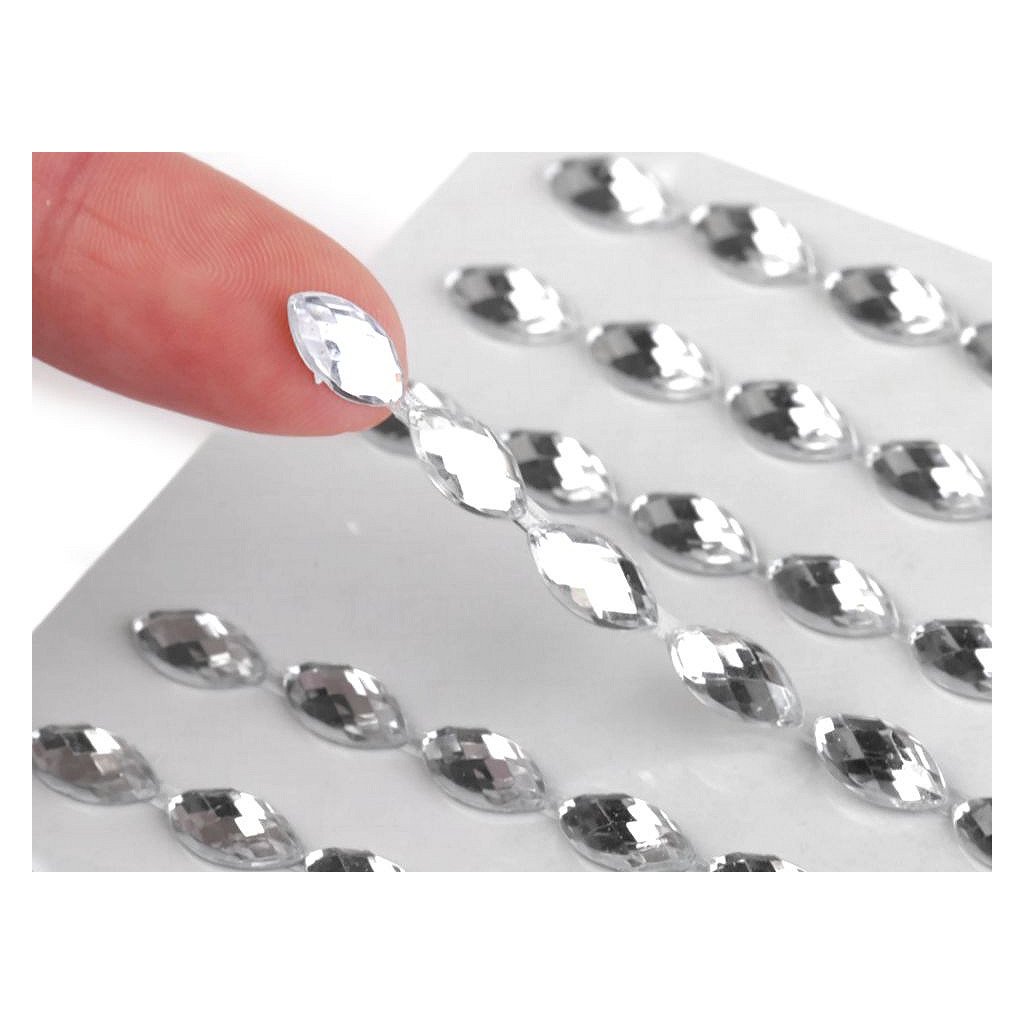 Samolepicí broušené kamínky ve tvaru navetky jsou vhodné na scrapbooking.