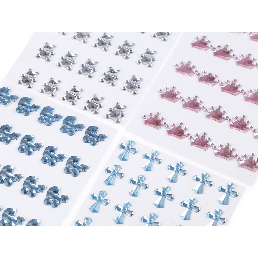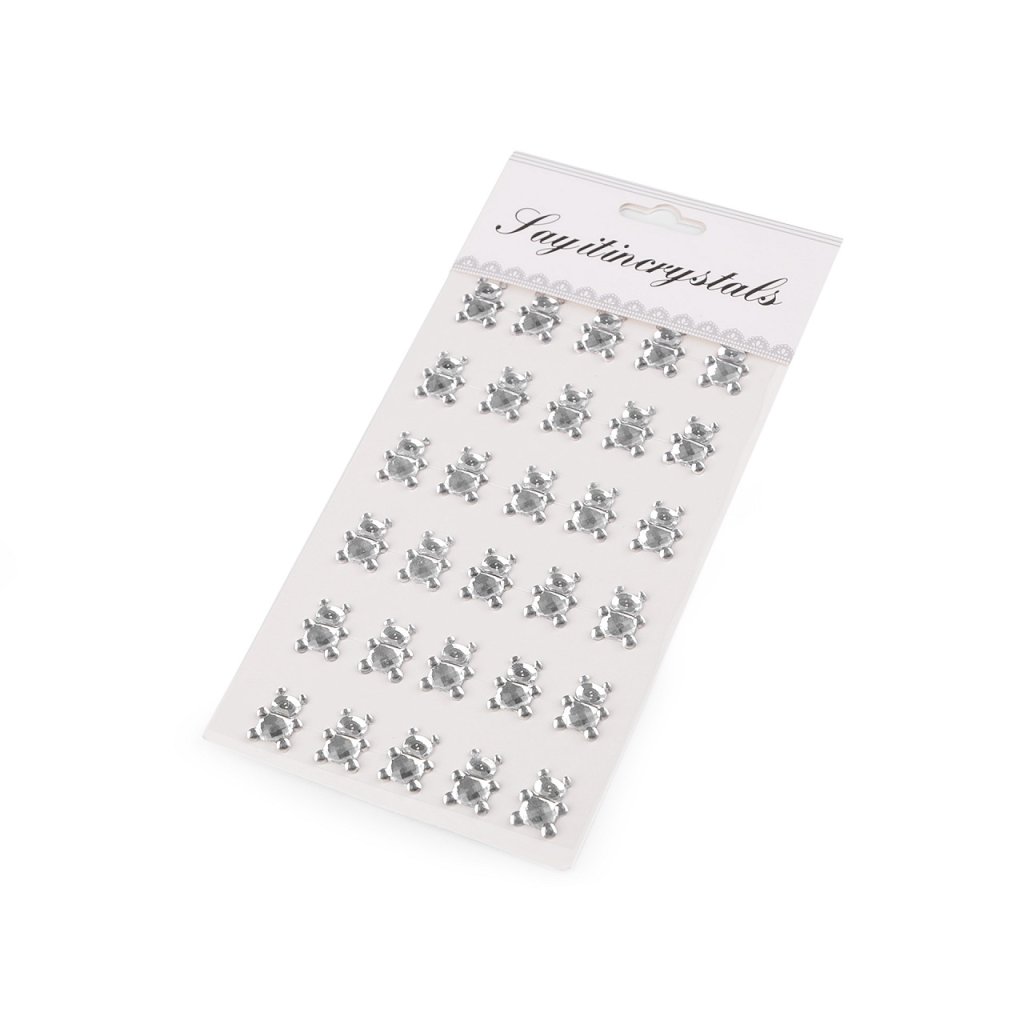 Samolepicí ozdoby z broušených kamínků se působivě třpytí. Ocení je všichni příznivci scrapbookingu a dívky. Všechny kamínky i květy jsou nalepené na jednom archu podkladové folie, ze které se pohodlně odlepí. Jsou v řadách navzájem spojené lepicím proužkem, takže tvoří pásky. Z pásků je ale můžete odstřihnout na jednotlivé kousky. Hodi se na ozdobení přáníčka, krabičky, květináče, deníku, fotoalba apod.