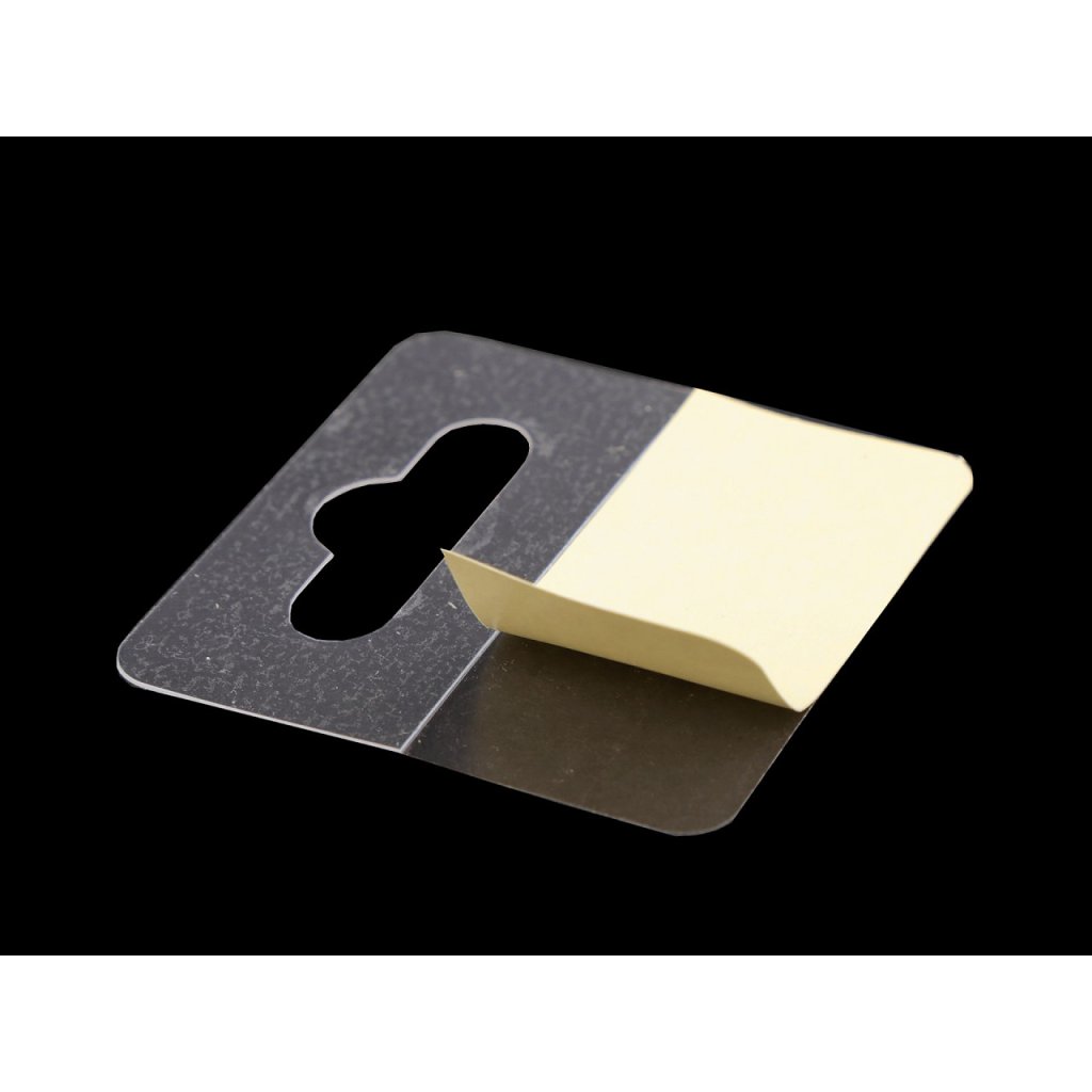 Transparentní samolepicí závěska se hodí k nalepení na krabičky, sáčky a karty, které potřebujete vystavit na prodejní stojan.