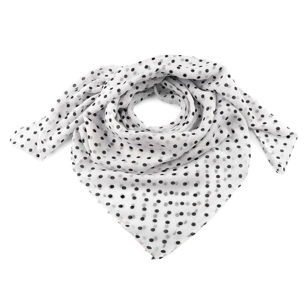 Puntíkovaný šátek je vzdušný a lehounký, velice příjemný na dotek. Je jemně průsvitný, doladí váš outfit, ať už si vezmete sako, halenku, svetřík či šaty.