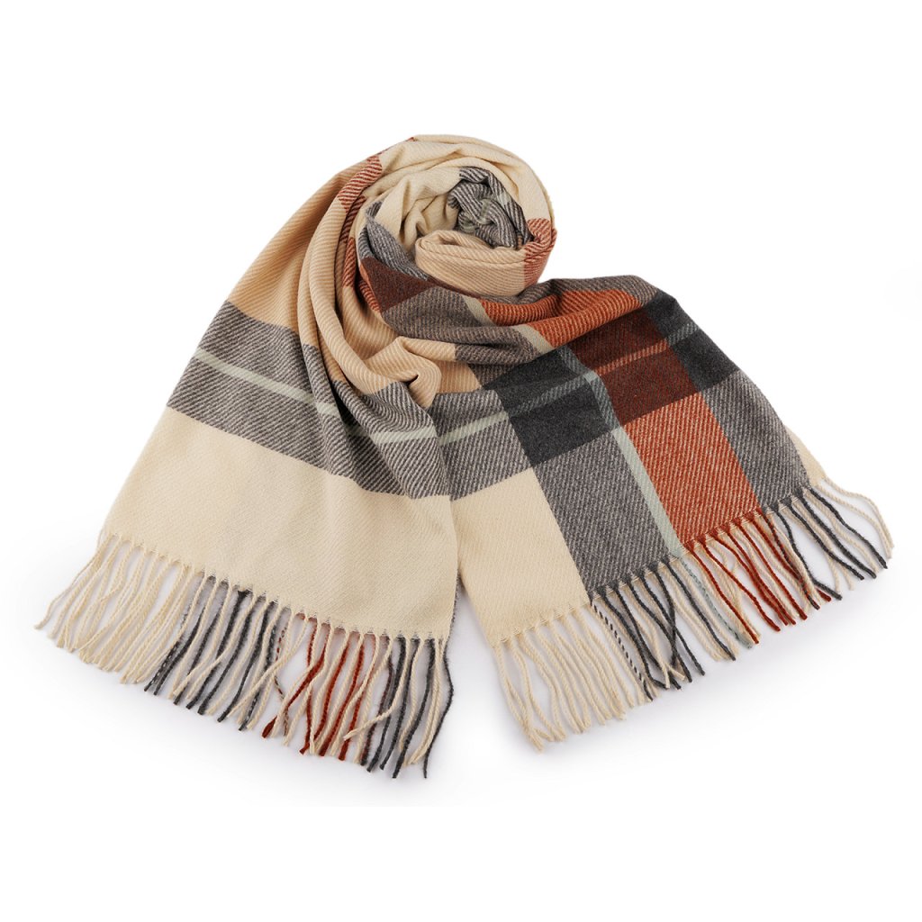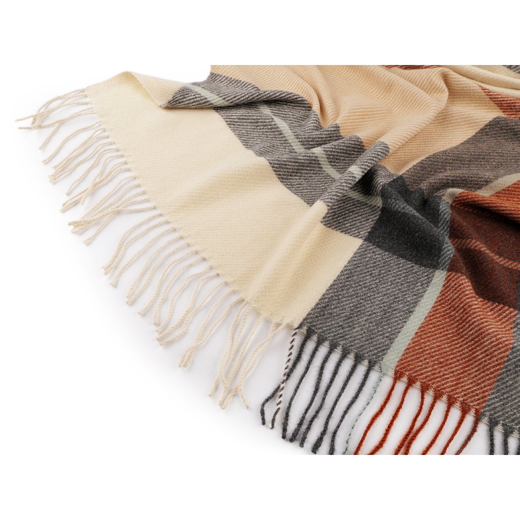 Velký károvaný šátek je velice kvalitní, komfortně vás zahřeje v sychravých dnech. Je vyrobený z materiálu příjemně hebkého na dotek. Hodí se ke kabátu, bundě i svetru. Na koncích je zakončený dlouhými třásněmi.