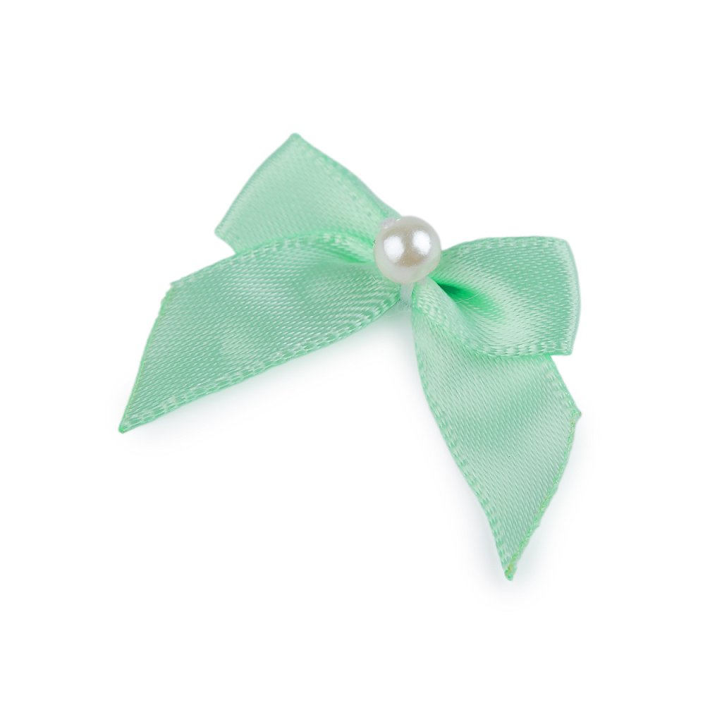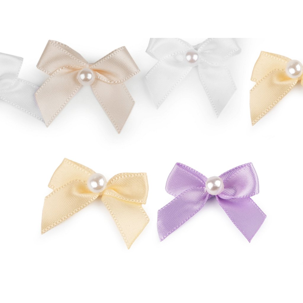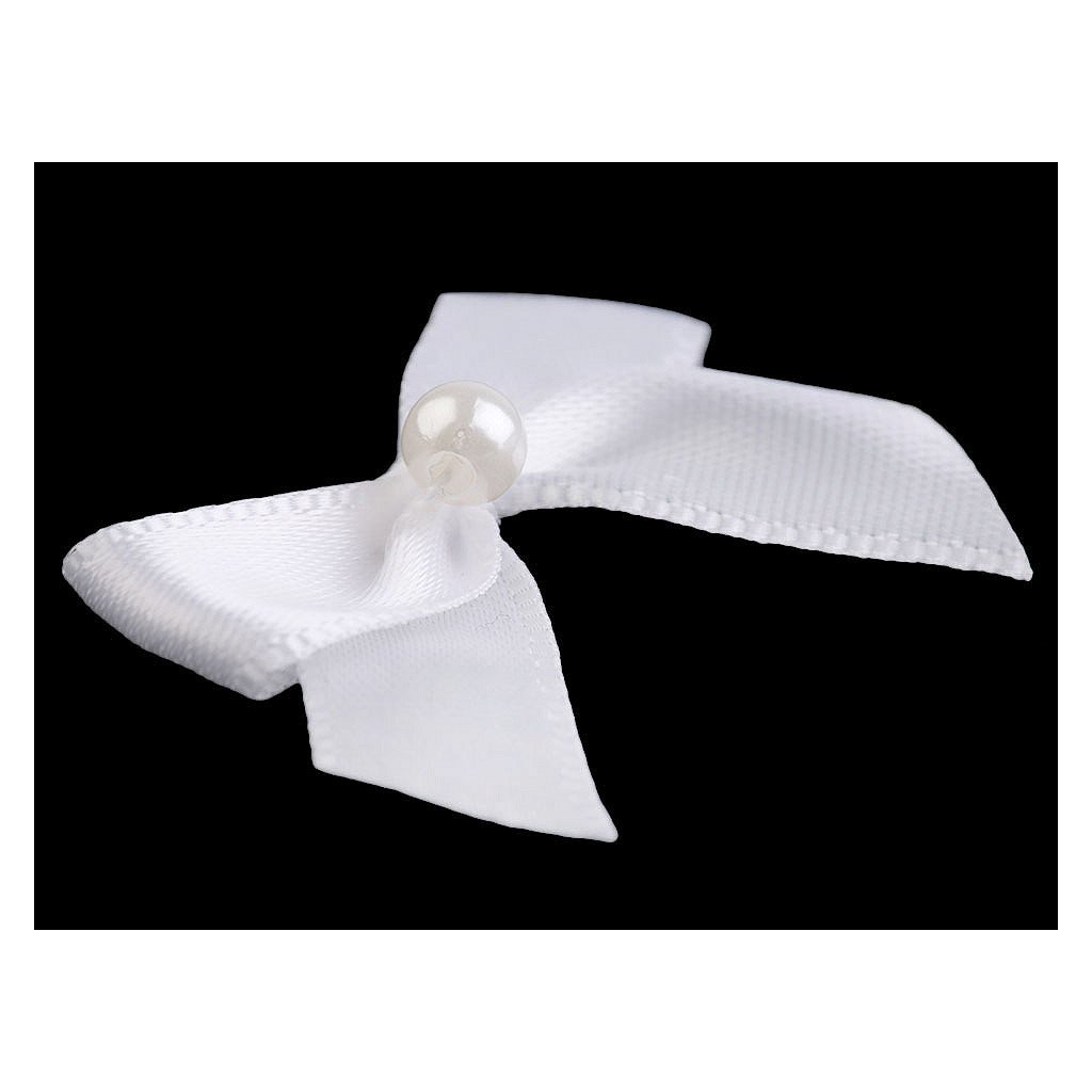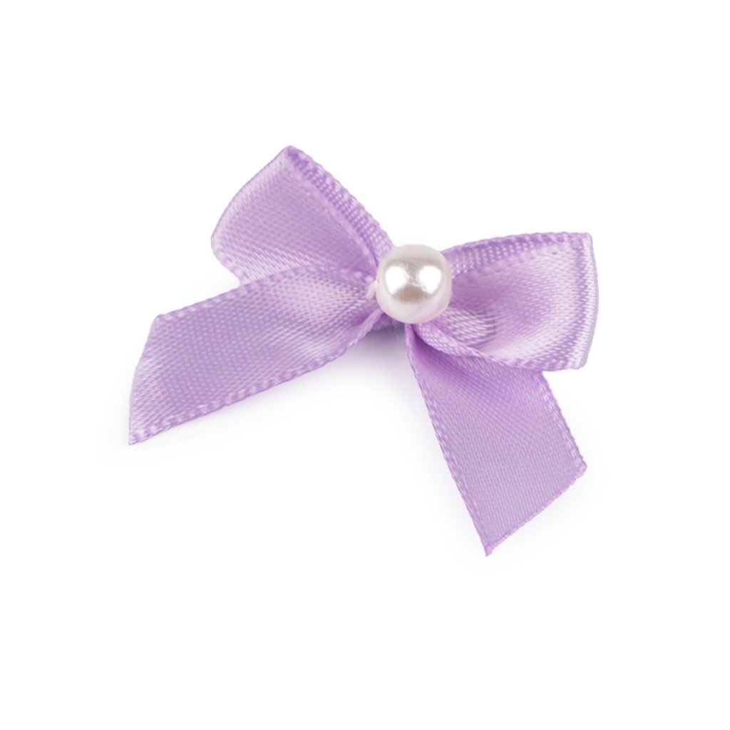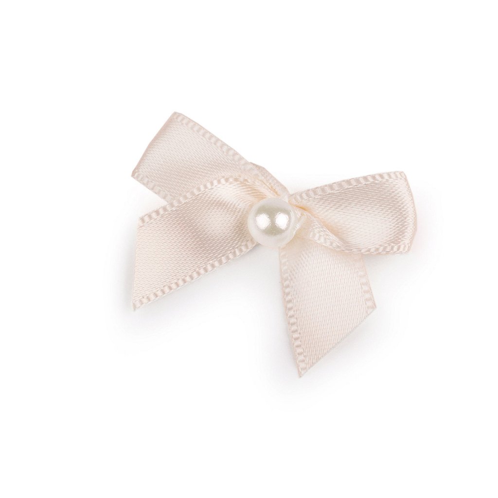 Jednoduchá saténová mašlička je uprostřed zdobená perlou, která je k ní přišitá.