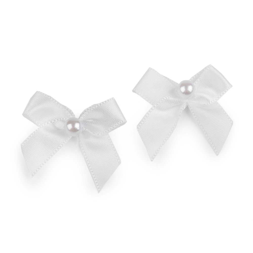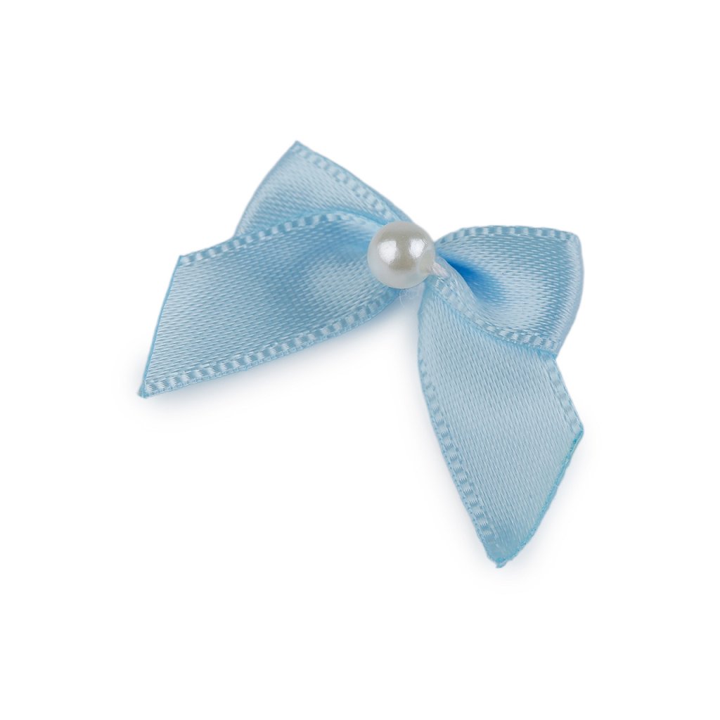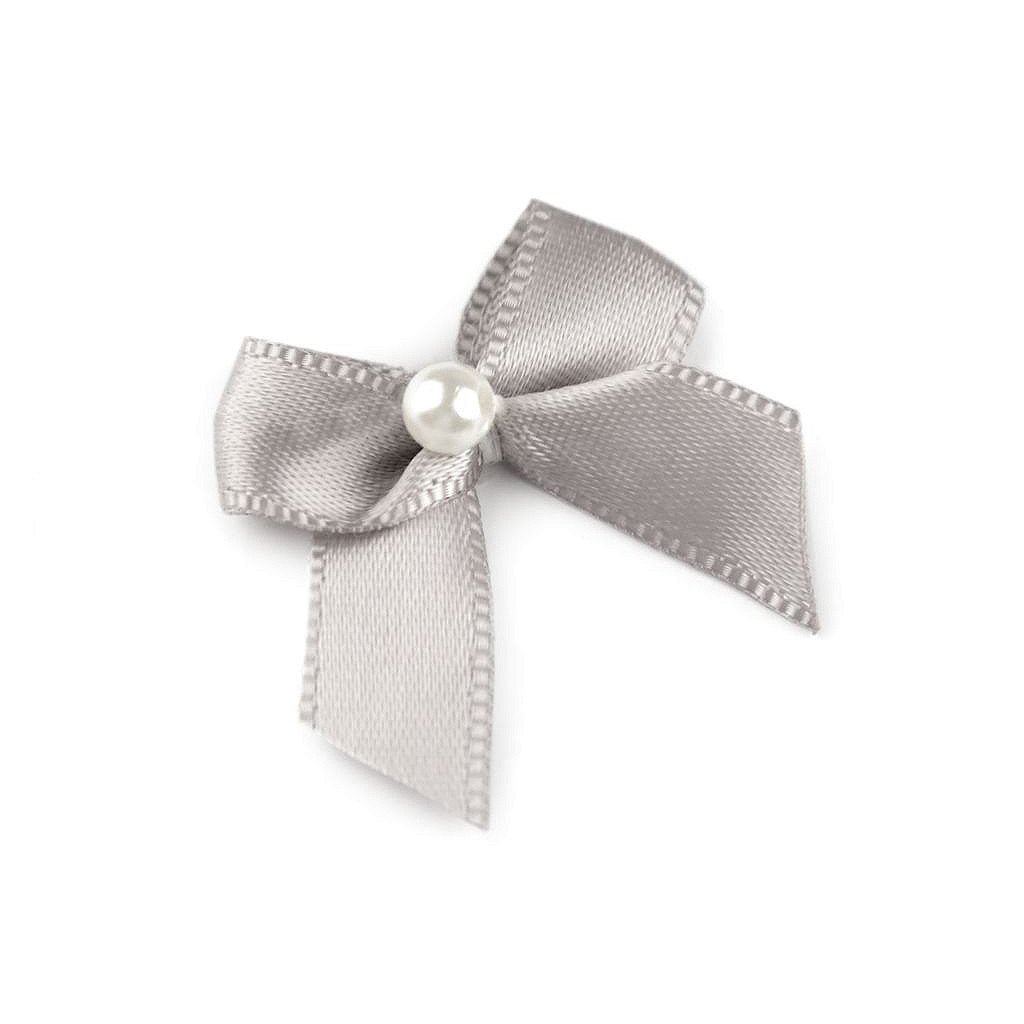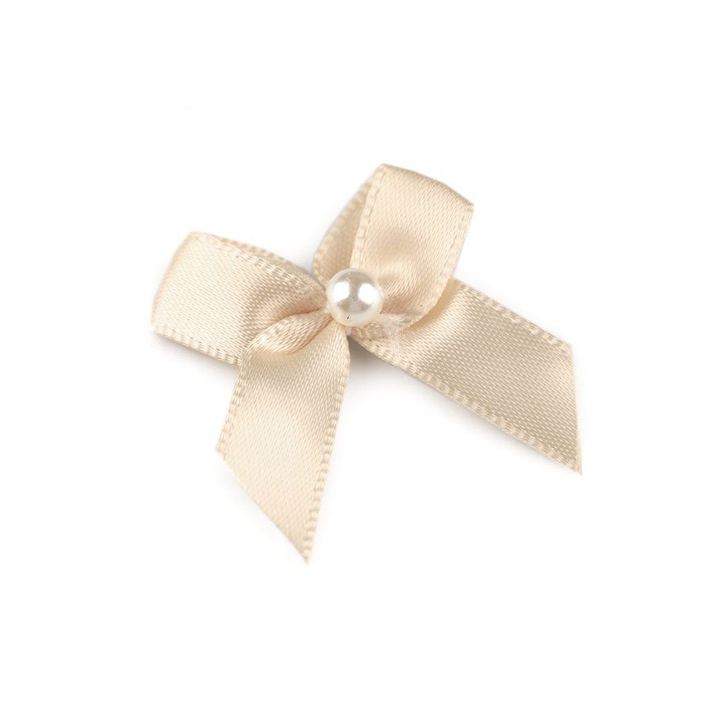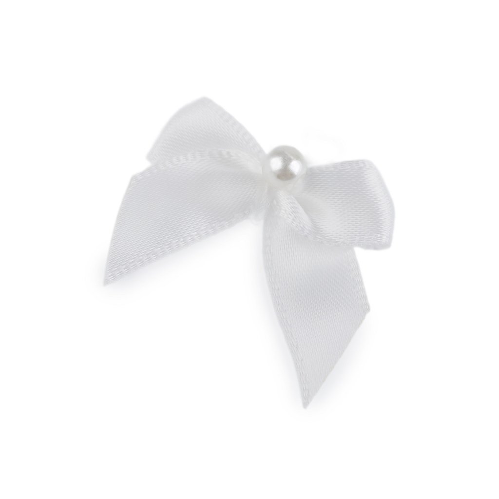 Jednoduchá saténová mašlička je uprostřed zdobená perlou, která je k ní přišitá.
