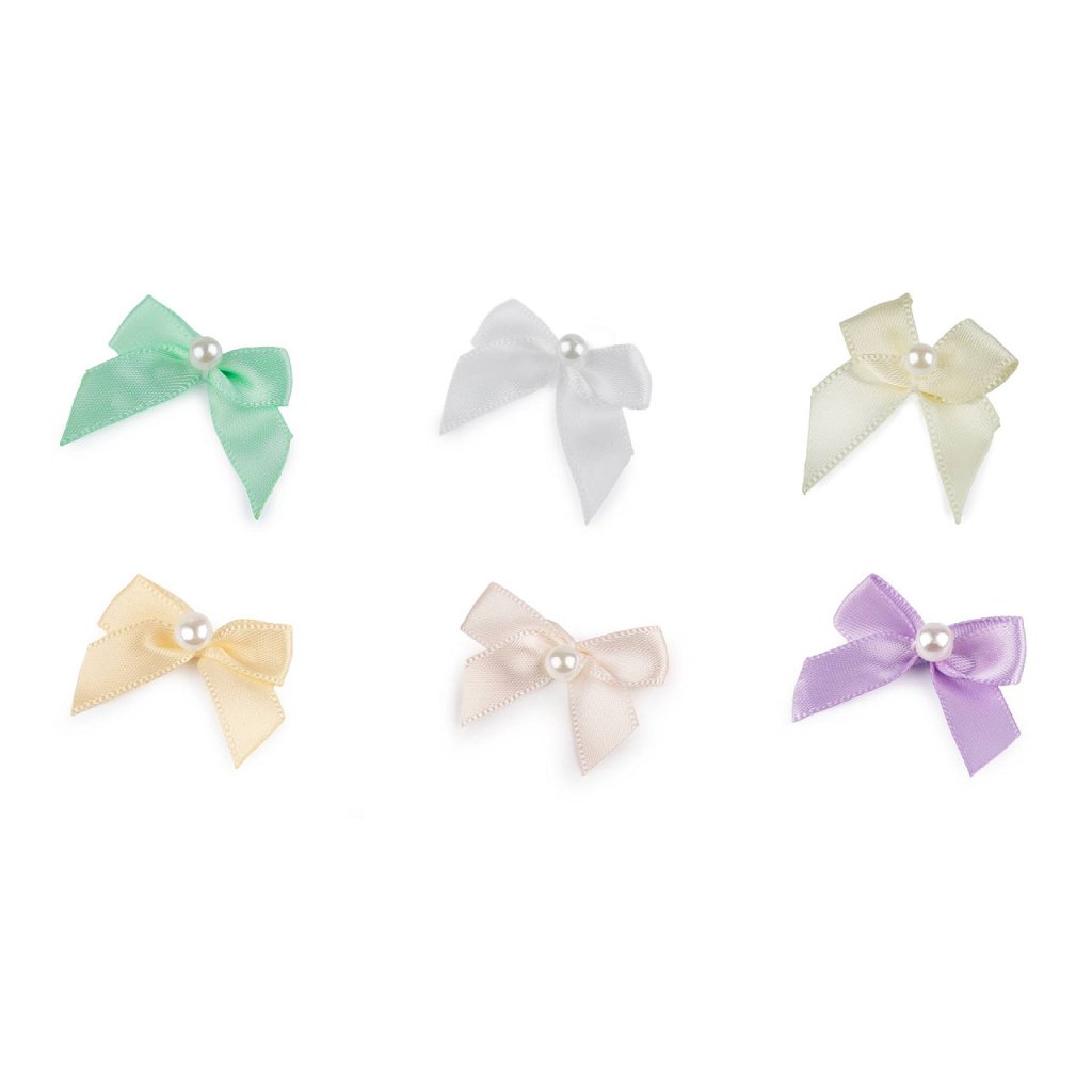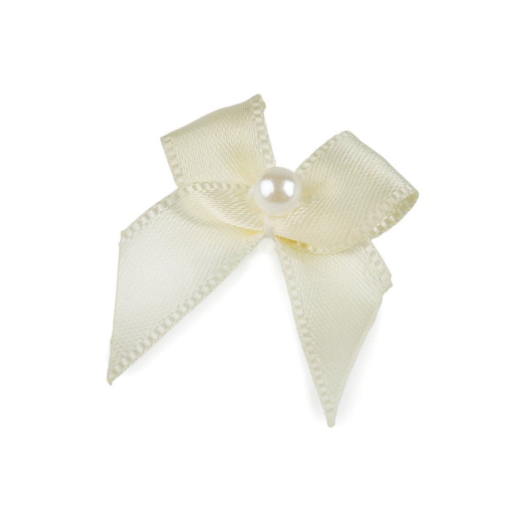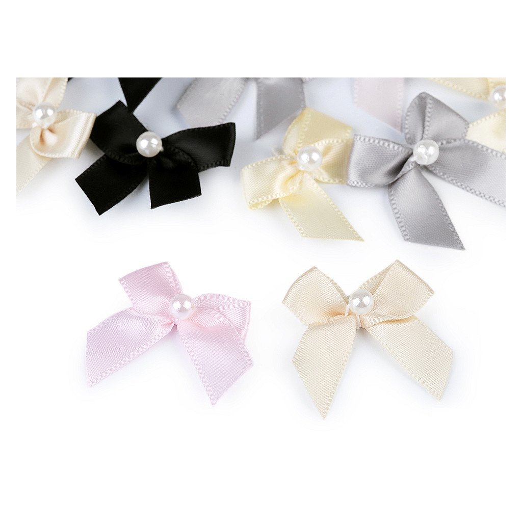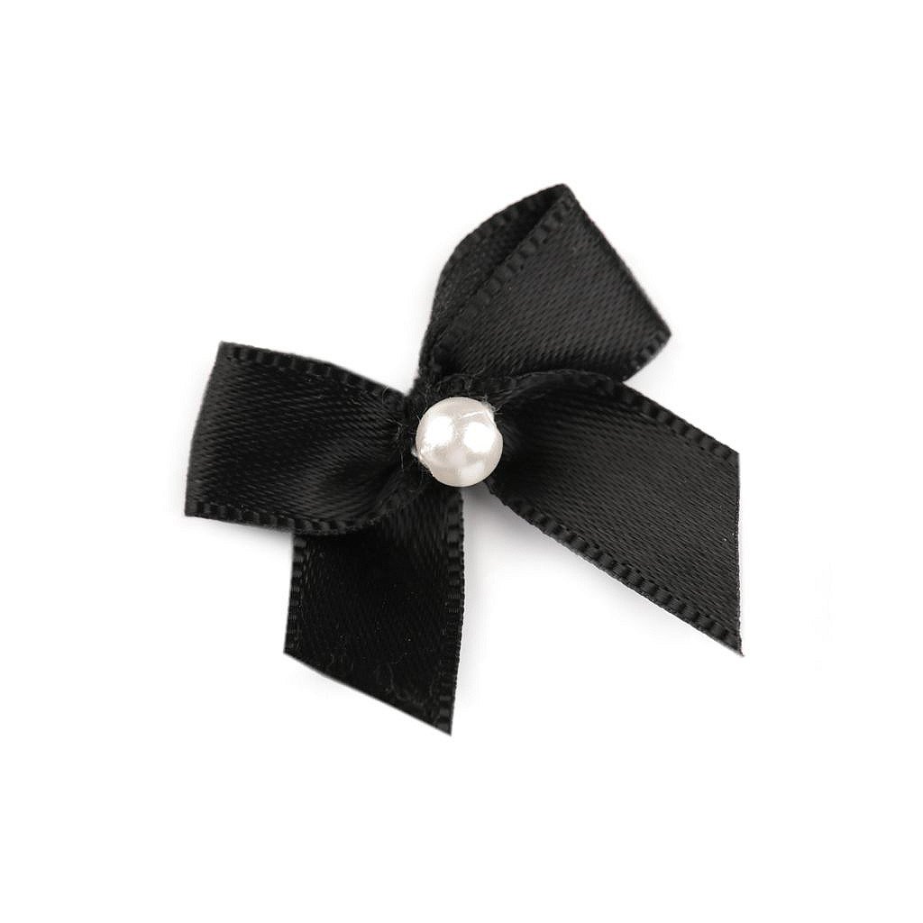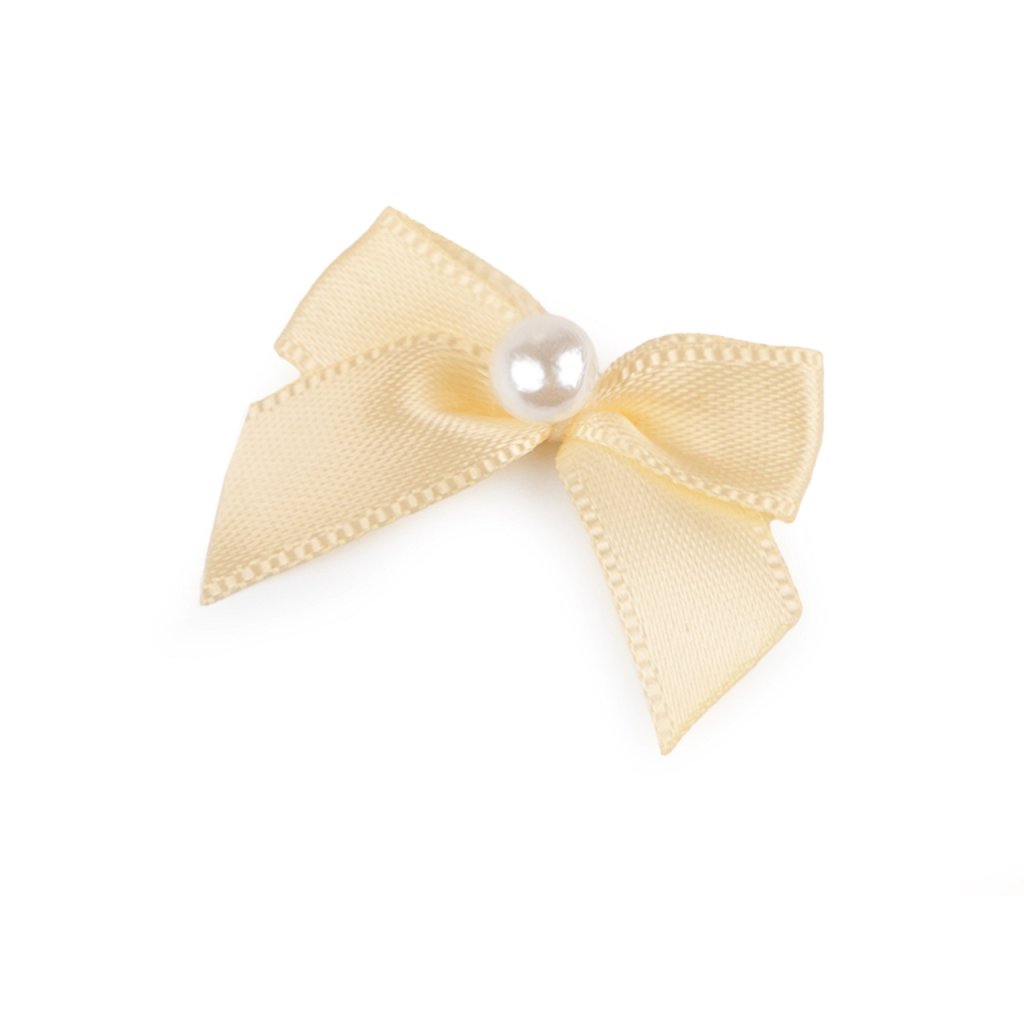 Jednoduchá saténová mašlička je uprostřed zdobená perlou, která je k ní přišitá.