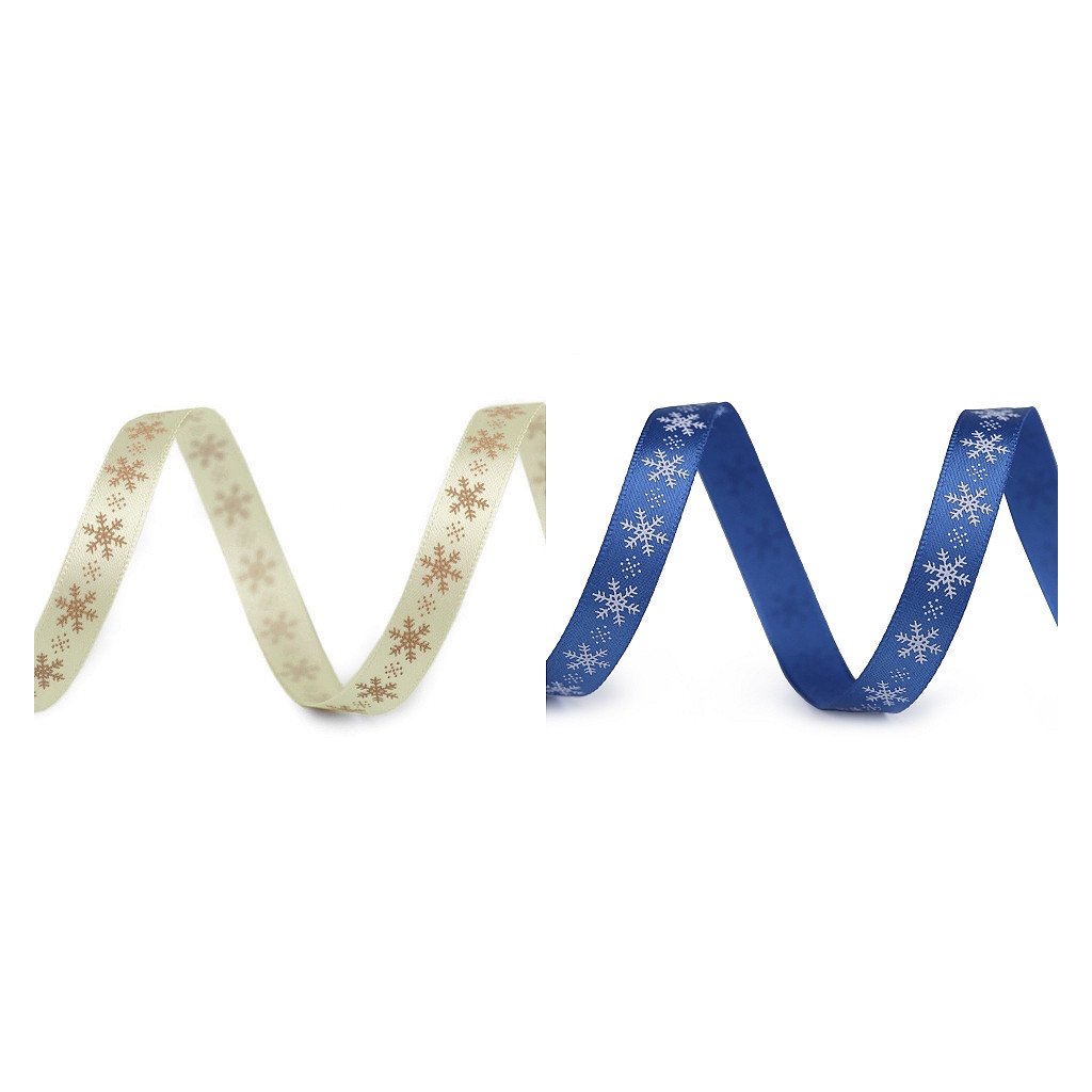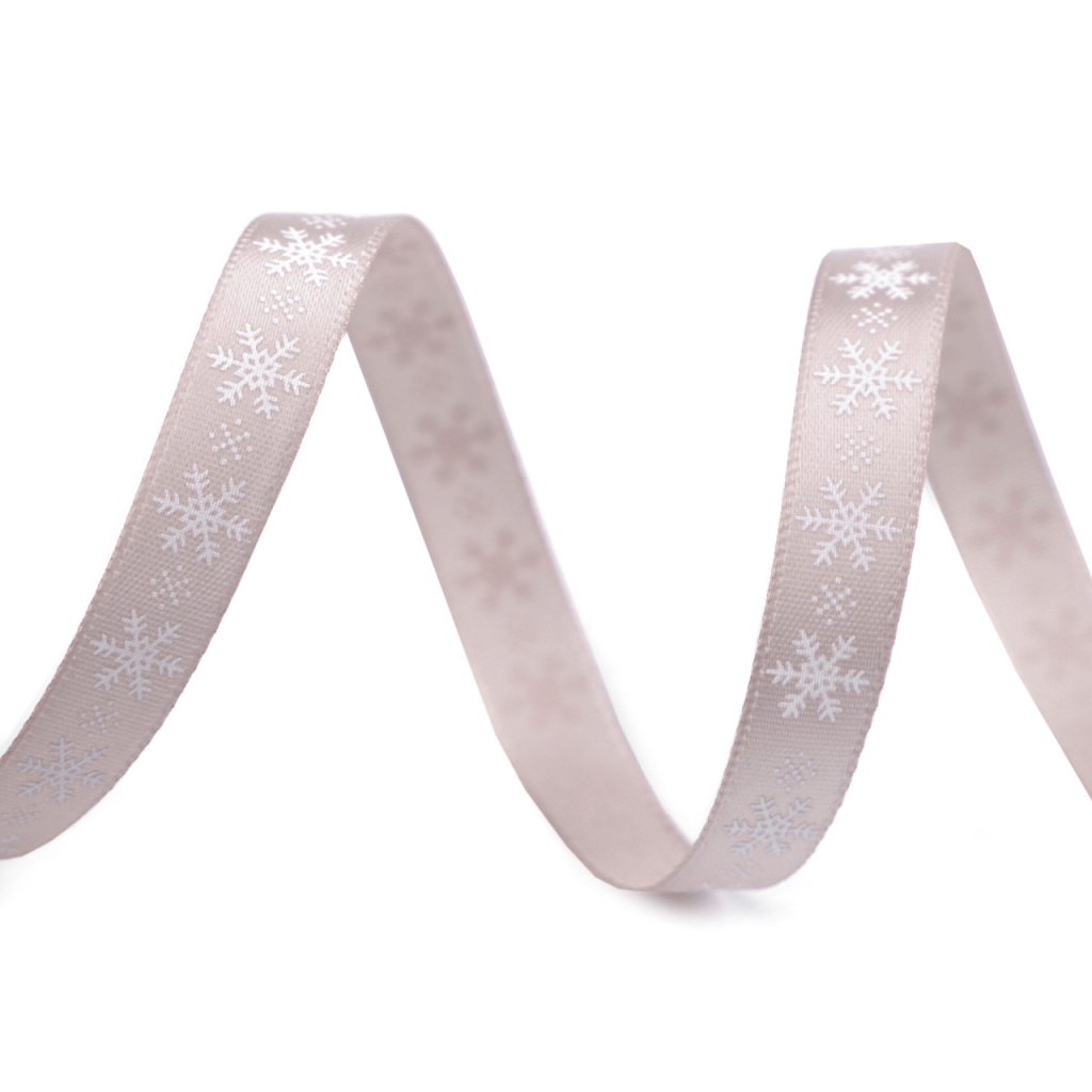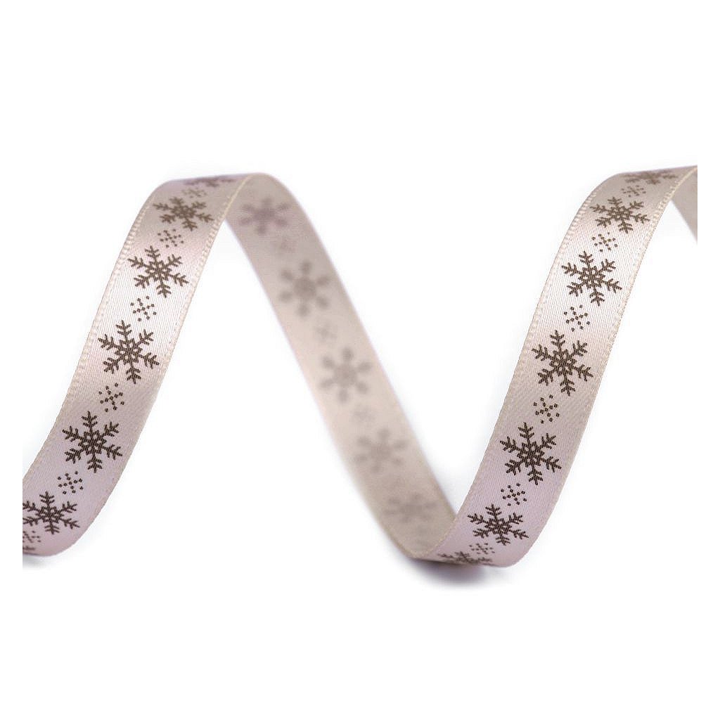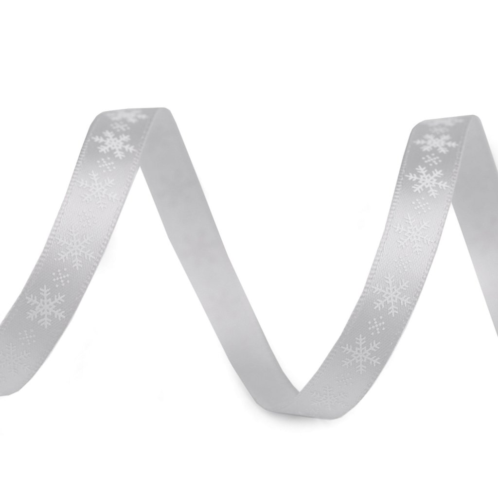 Saténová stuha s potiskem sněhových vloček. Potisk je jednostranný.