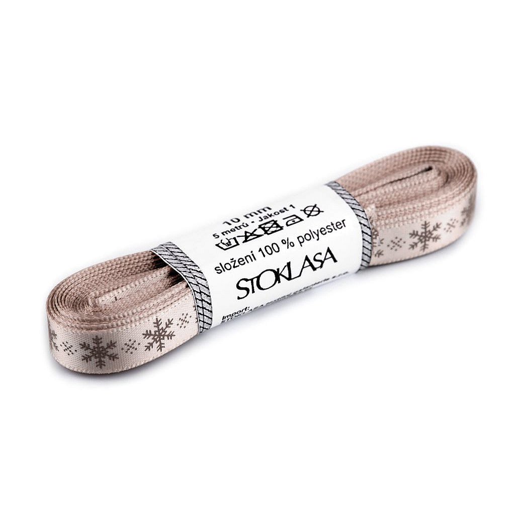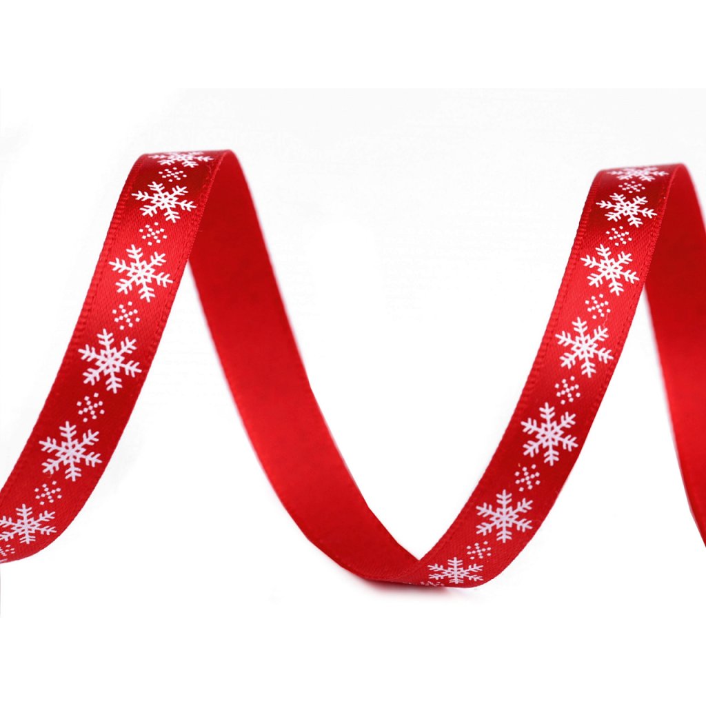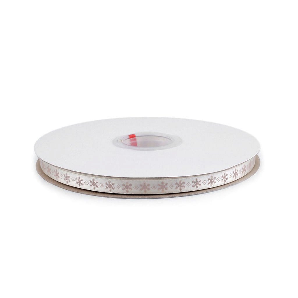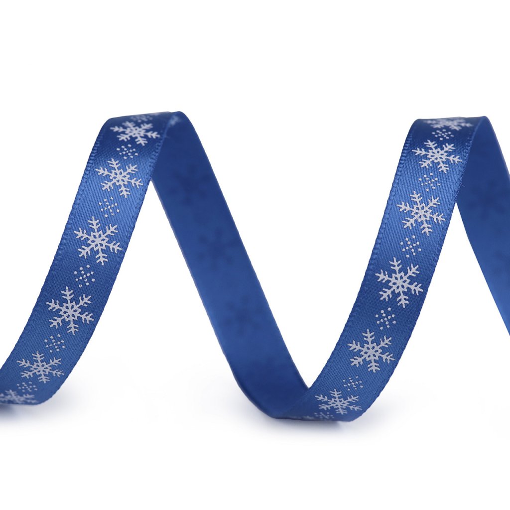 Saténová stuha s potiskem sněhových vloček. Potisk je jednostranný.