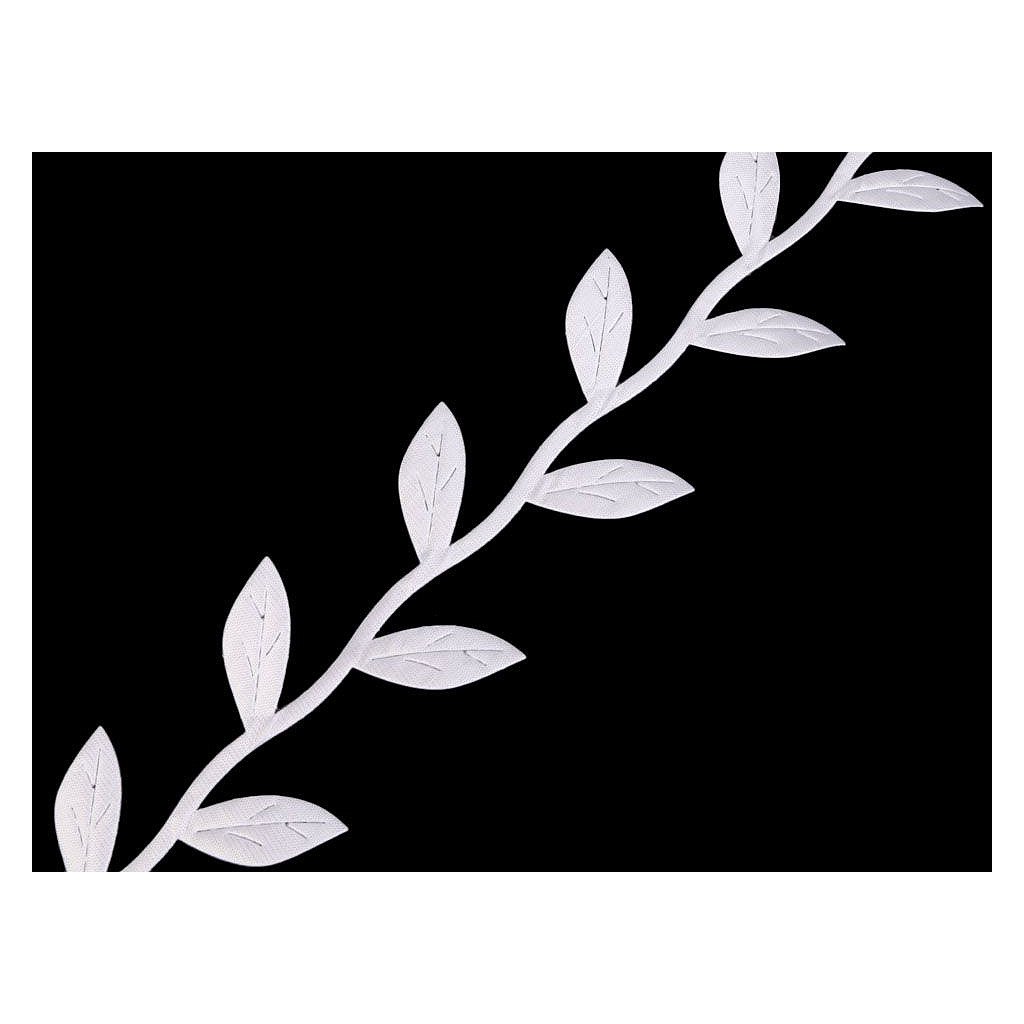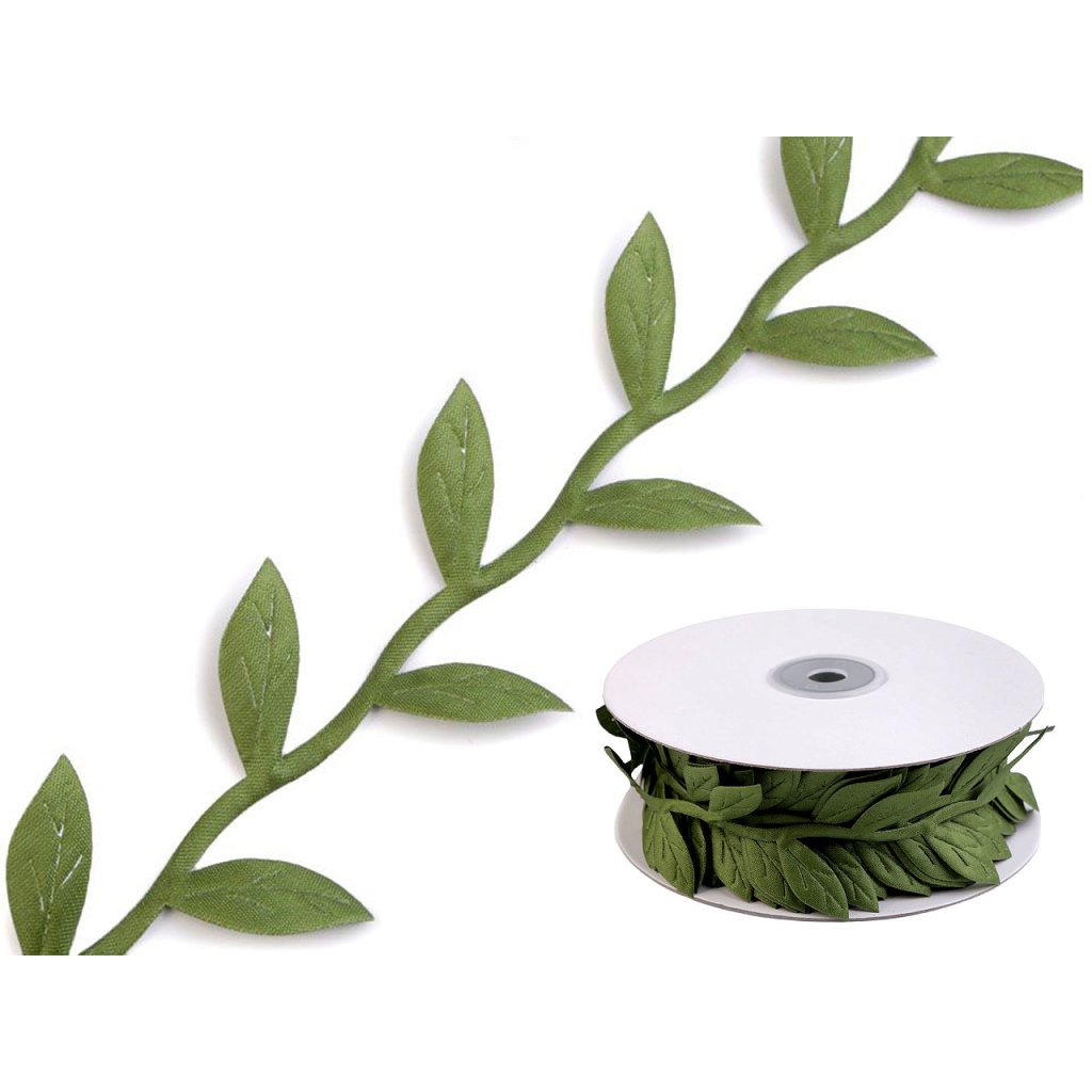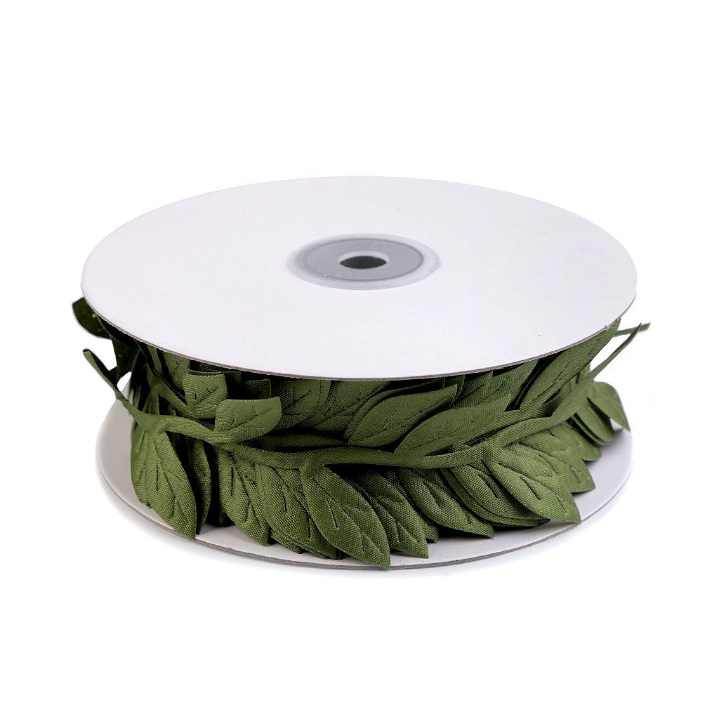 Saténový prýmek s motivem lístků je vhodný nejen k šití, ale i k dekorování. Listy mají vytlačené žilkování, lze je odstřihnout a použít samostatně.
