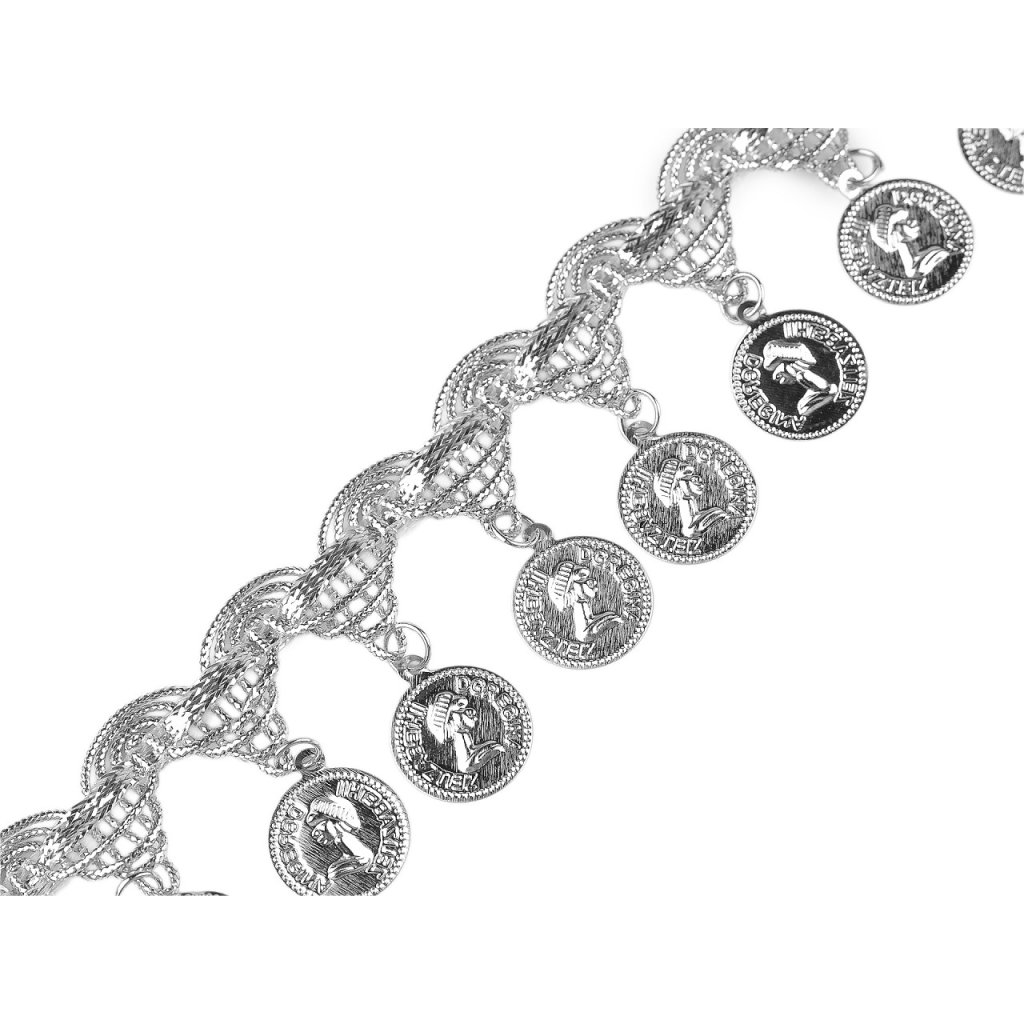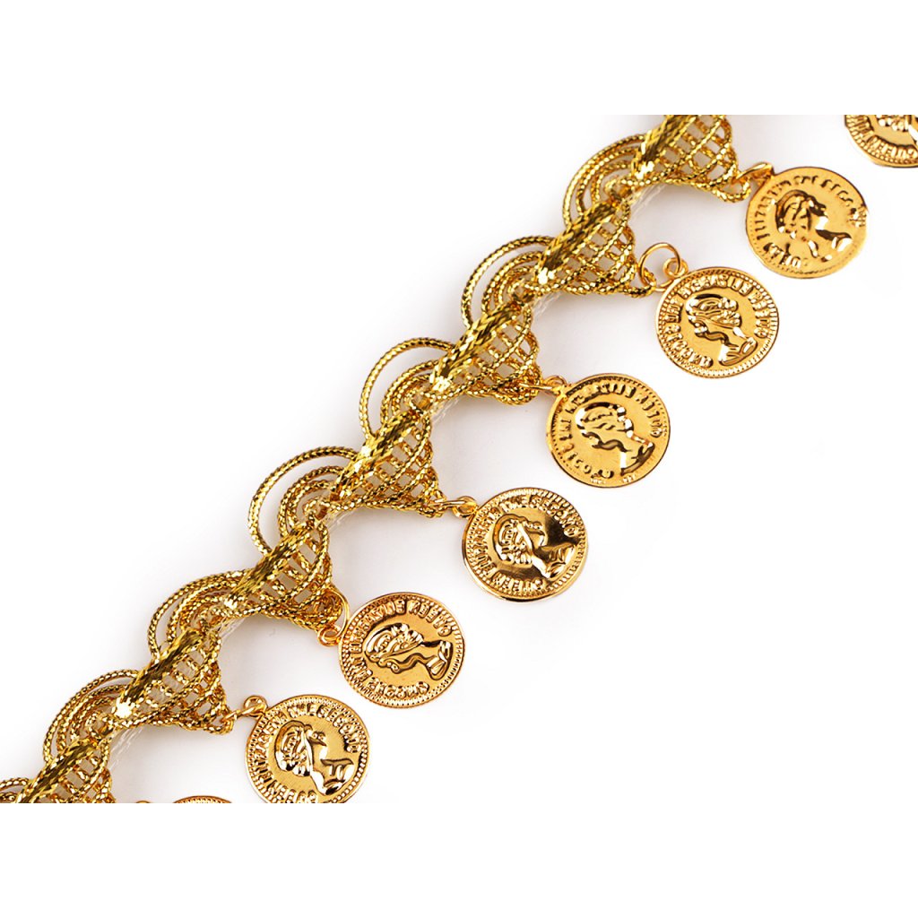 Shakira leonský prýmek s penízky je okouzlující dekorativní prvek, který upoutá svou jedinečností a elegancí. Je typický svými zavěšenými kovovými penízky s reliéfem hlavy, které při pohybu jemně cinkají. Určitě jej znáte z kostýmů břišních tanečnic, kterým pomáhá zvýraznit jejich pohyb při tanci. Prýmek je pevný, jednostranný, díky lurexu působí velmi elegantně.