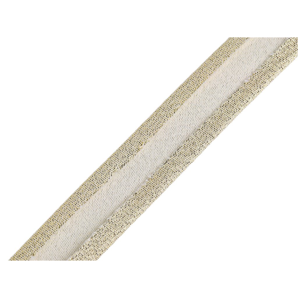 Lurexový šikmý proužek se elegantně třpytí. Využijete ho k olemování a začištění oděvů - večerních a plesových šatů, sukní, bolerek, sak apod. Můžete ho použít i jako ozdobný prvek na tašky a kabelky, ubrusy nebo povlaky na polštáře.