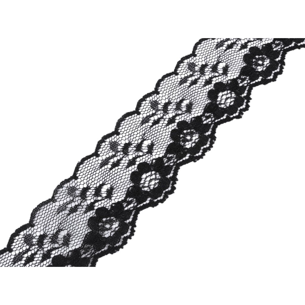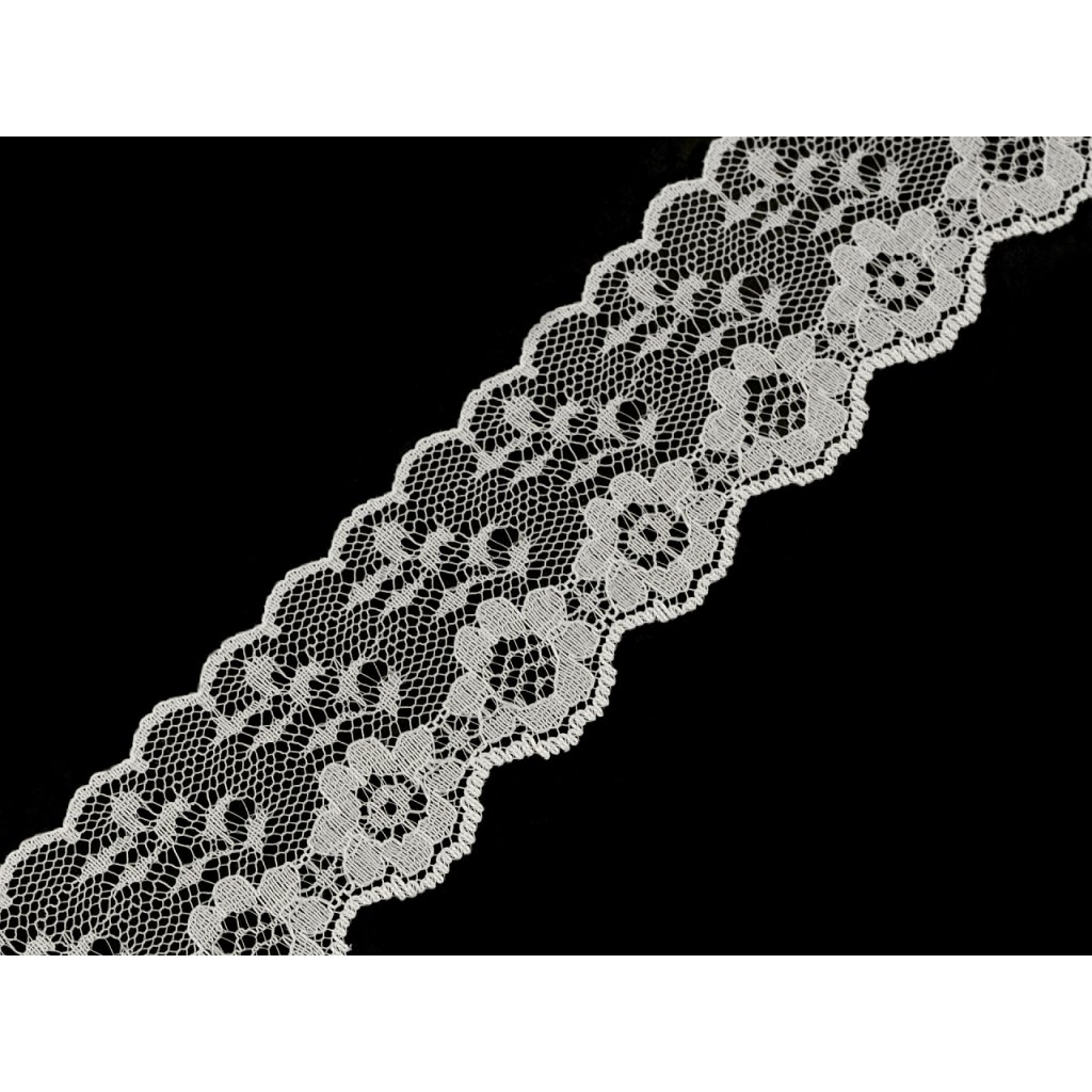 Silonová krajka působí jemně a její okraje zdobí motivy květů. Krajka je měkká a pevná, není pružná.