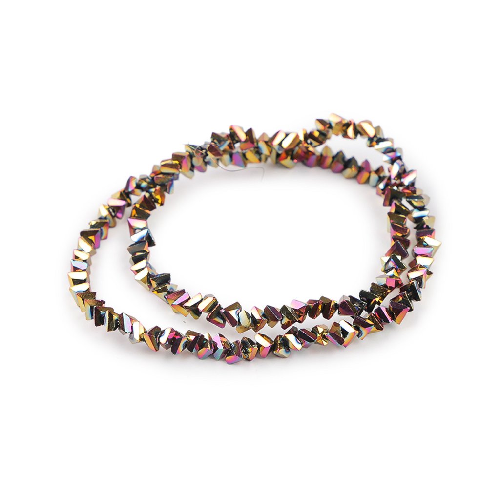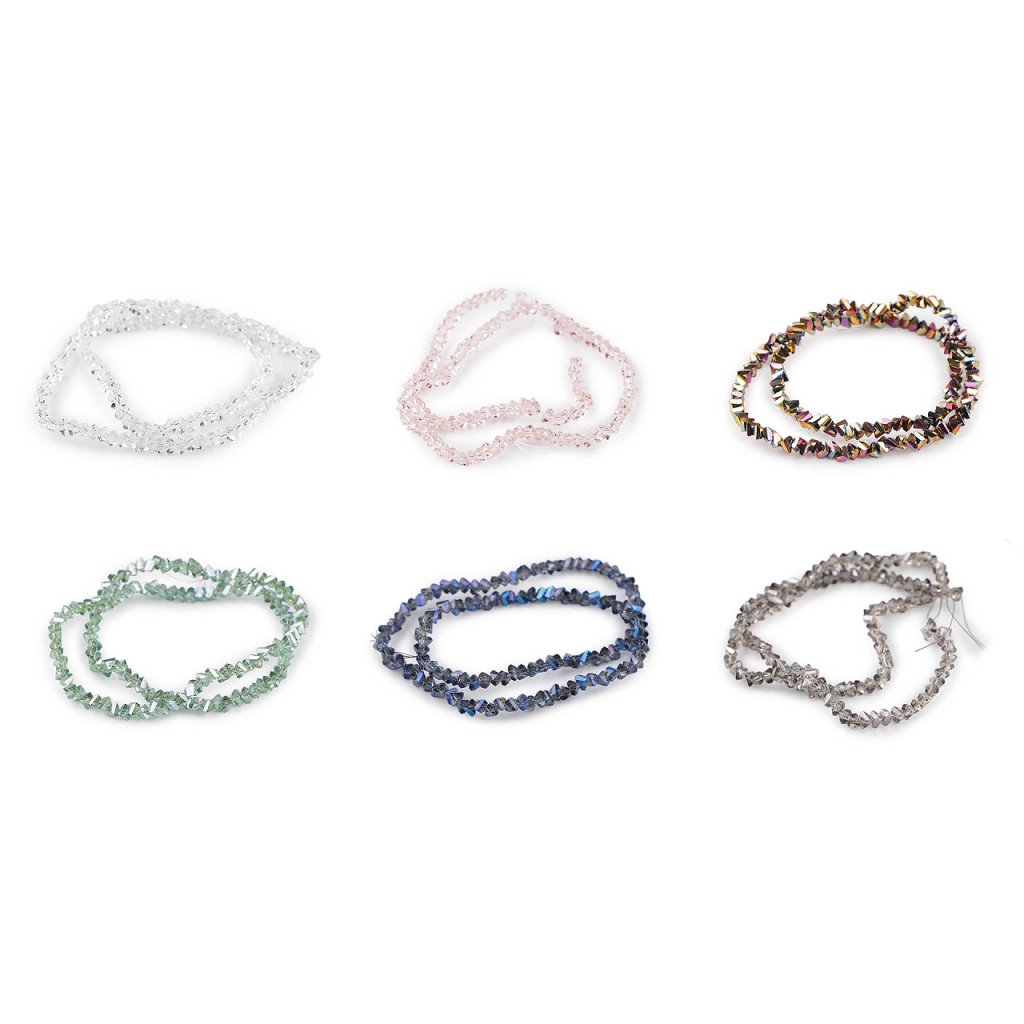 Skleněné broušené korálky triangl se vyznačují precizním broušením, které jim dodává jedinečný lesk a zajímavý tvar. Vynikají především svým třpytem. Jsou vhodné pro precizní práci při tvorbě šperků.